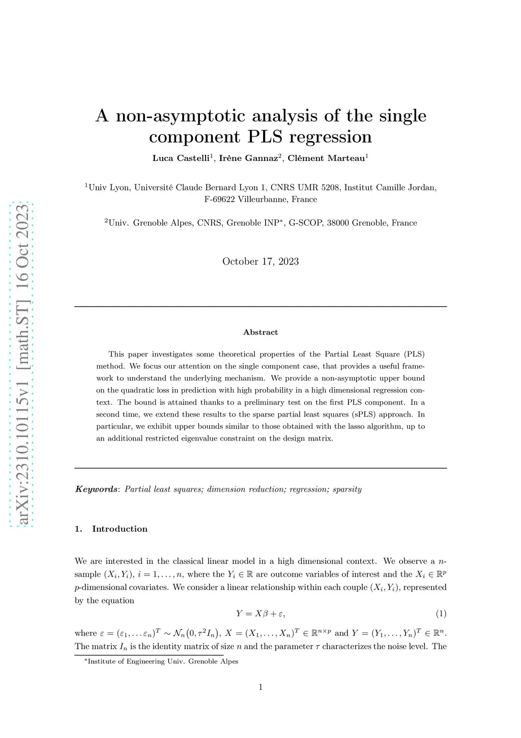 A non-asymptotic analysis of the single component PLS regression