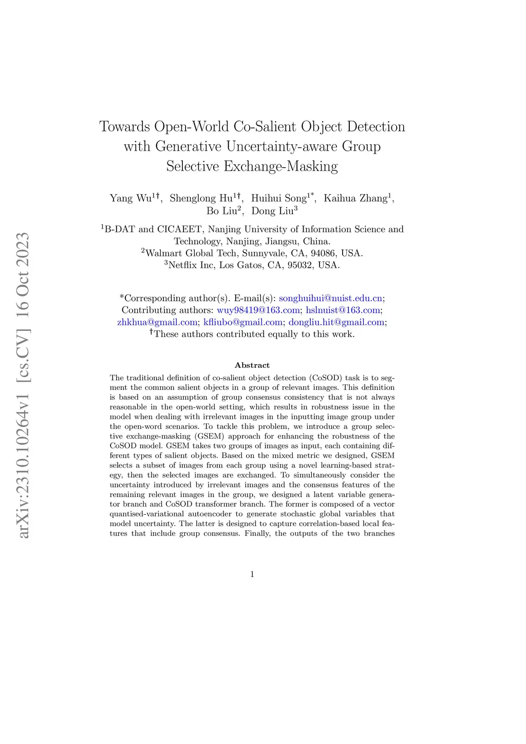 The traditional definition of co-salient object detection (CoSOD) task is to segment the common salient objects in a group of relevant images. This definition is based on an assumption of group consensus consistency that is not always reasonable in the open-world setting, which results in robustness issue in the model when dealing with irrelevant images in the inputting image group under the open-word scenarios. To tackle this problem, we introduce a group selective exchange-masking (GSEM) approach for enhancing the robustness of the CoSOD model. GSEM takes two groups of images as input, each containing different types of salient objects. Based on the mixed metric we designed, GSEM selects a subset of images from each group using a novel learning-based strategy, then the selected images are exchanged. To simultaneously consider the uncertainty introduced by irrelevant images and the consensus features of the remaining relevant images in the group, we designed a latent variable generator branch and CoSOD transformer branch. The former is composed of a vector quantised-variational autoencoder to generate stochastic global variables that model uncertainty. The latter is designed to capture correlation-based local features that include group consensus. Finally, the outputs of the two branches are merged and passed to a transformer-based decoder to generate robust predictions. Taking into account that there are currently no benchmark datasets specifically designed for open-world scenarios, we constructed three open-world benchmark datasets, namely OWCoSal, OWCoSOD, and OWCoCA, based on existing datasets. By breaking the group-consistency assumption, these datasets provide effective simulations of real-world scenarios and can better evaluate the robustness and practicality of models.
