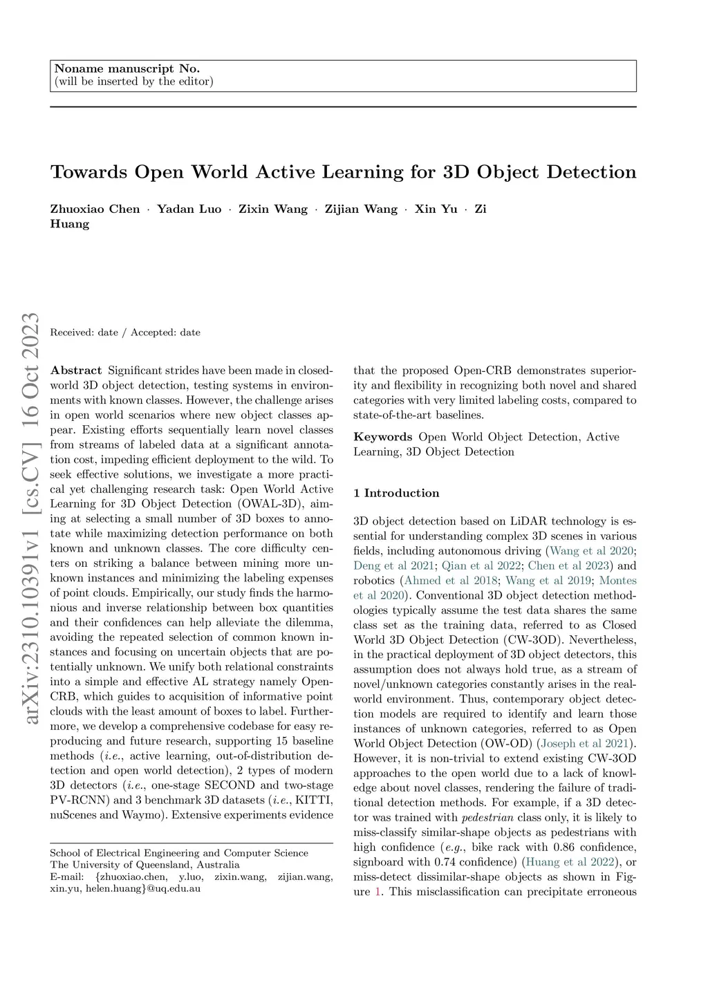 Towards Open World Active Learning for 3D Object Detection