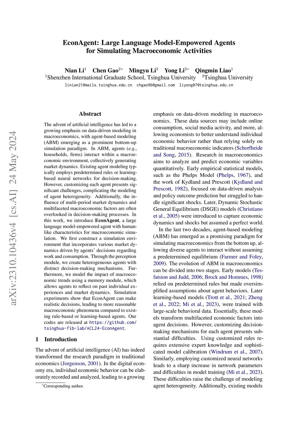 EconAgent: Large Language Model-Empowered Agents for Simulating