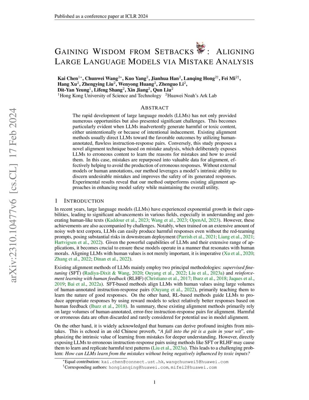 Gaining Wisdom from Setbacks: Aligning Large Language Models via Mistake