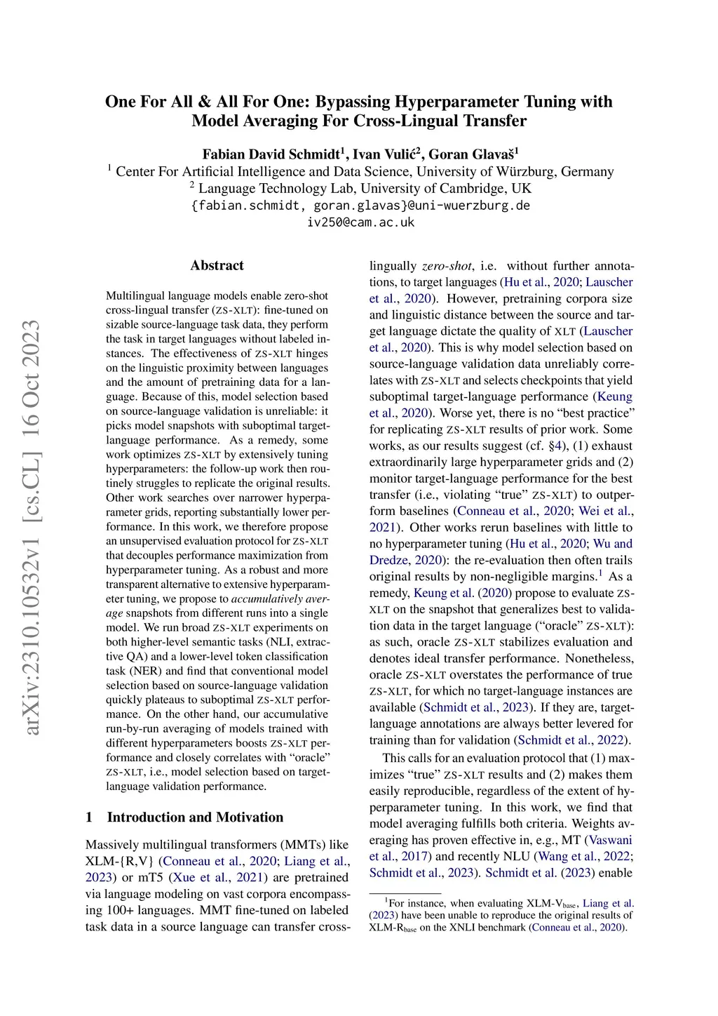 Averaging For Cross-Lingual Transfer