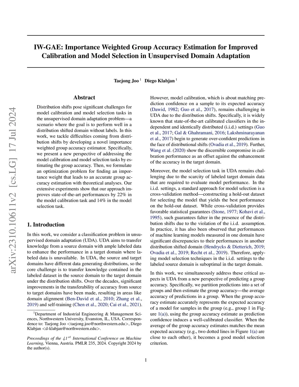 Distribution shifts pose significant challenges for model calibration and model selection tasks in the unsupervised domain adaptation problem -- a scenario where the goal is to perform well in a distribution shifted domain without labels. In this work, we tackle difficulties coming from distribution shifts by developing a novel importance weighted group accuracy estimator. Specifically, we present a new perspective of addressing the model calibration and model selection tasks by estimating the group accuracy. Then, we formulate an optimization problem for finding an importance weight that leads to an accurate group accuracy estimation with theoretical analyses. Our extensive experiments show that our approach improves state-of-the-art performances by 22% in the model calibration task and 14% in the model selection task.