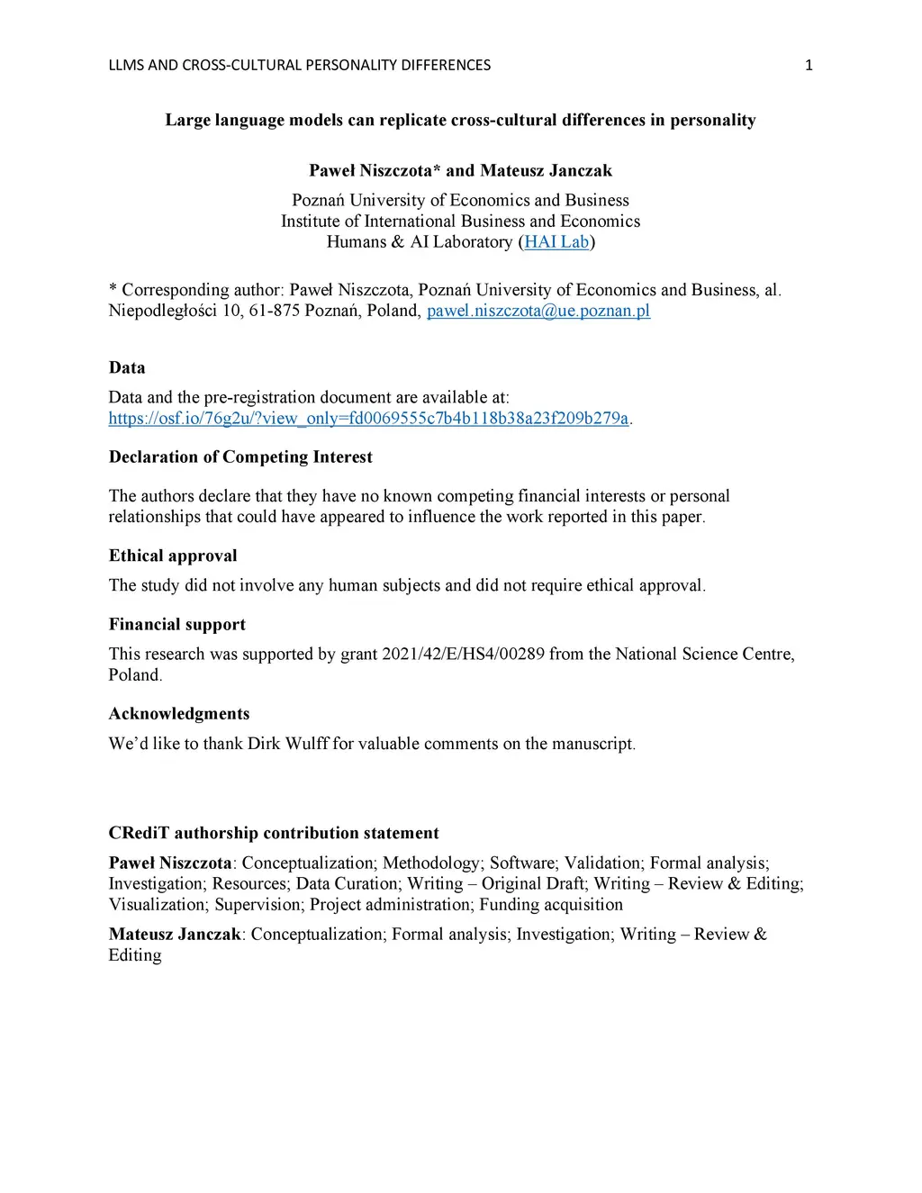 Large language models can replicate cross-cultural differences in personality