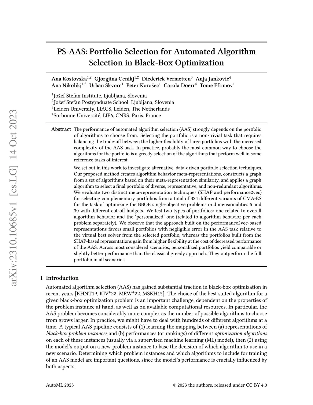 PS-AAS: Portfolio Selection for Automated Algorithm Selection in