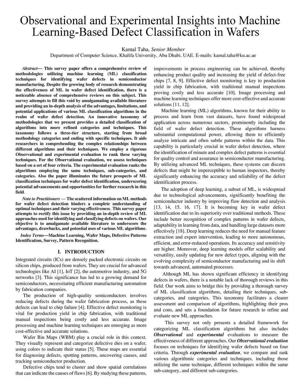 This survey paper offers a comprehensive review of methodologies utilizing machine learning (ML) classification techniques for identifying wafer defects in semiconductor manufacturing. Despite the growing body of research demonstrating the effectiveness of ML in wafer defect identification, there is a noticeable absence of comprehensive reviews on this subject. This survey attempts to fill this void by amalgamating available literature and providing an in-depth analysis of the advantages, limitations, and potential applications of various ML classification algorithms in the realm of wafer defect detection. An innovative taxonomy of methodologies that we present provides a detailed classification of algorithms into more refined categories and techniques. This taxonomy follows a three-tier structure, starting from broad methodology categories and ending with specific techniques. It aids researchers in comprehending the complex relationships between different algorithms and their techniques. We employ a rigorous Observational and experimental evaluation to rank these varying techniques. For the Observational evaluation, we assess techniques based on a set of four criteria. The experimental evaluation ranks the algorithms employing the same techniques, sub-categories, and categories. Also the paper illuminates the future prospects of ML classification techniques for wafer defect identification, underscoring potential advancements and opportunities for further research in this field