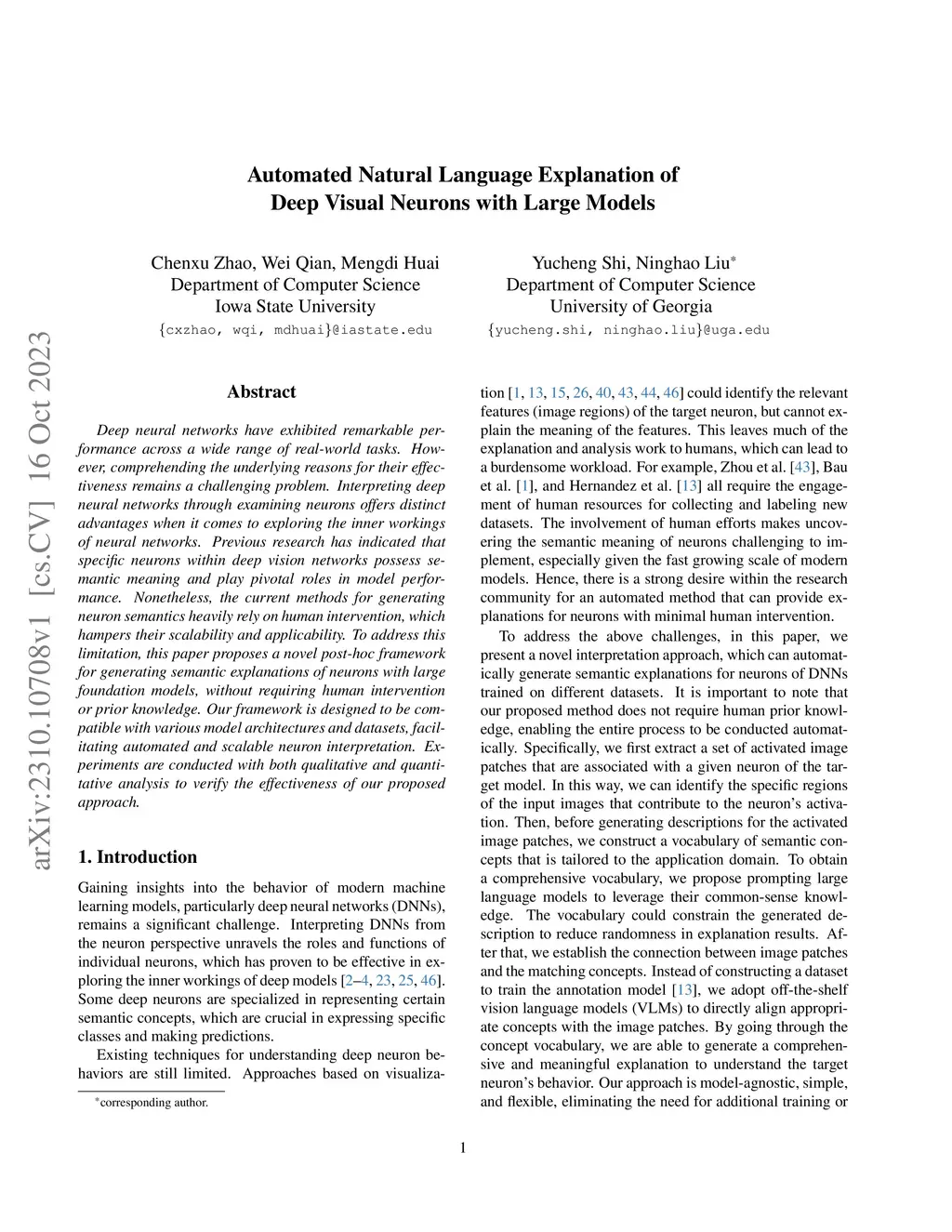 Automated Natural Language Explanation of Deep Visual Neurons with Large