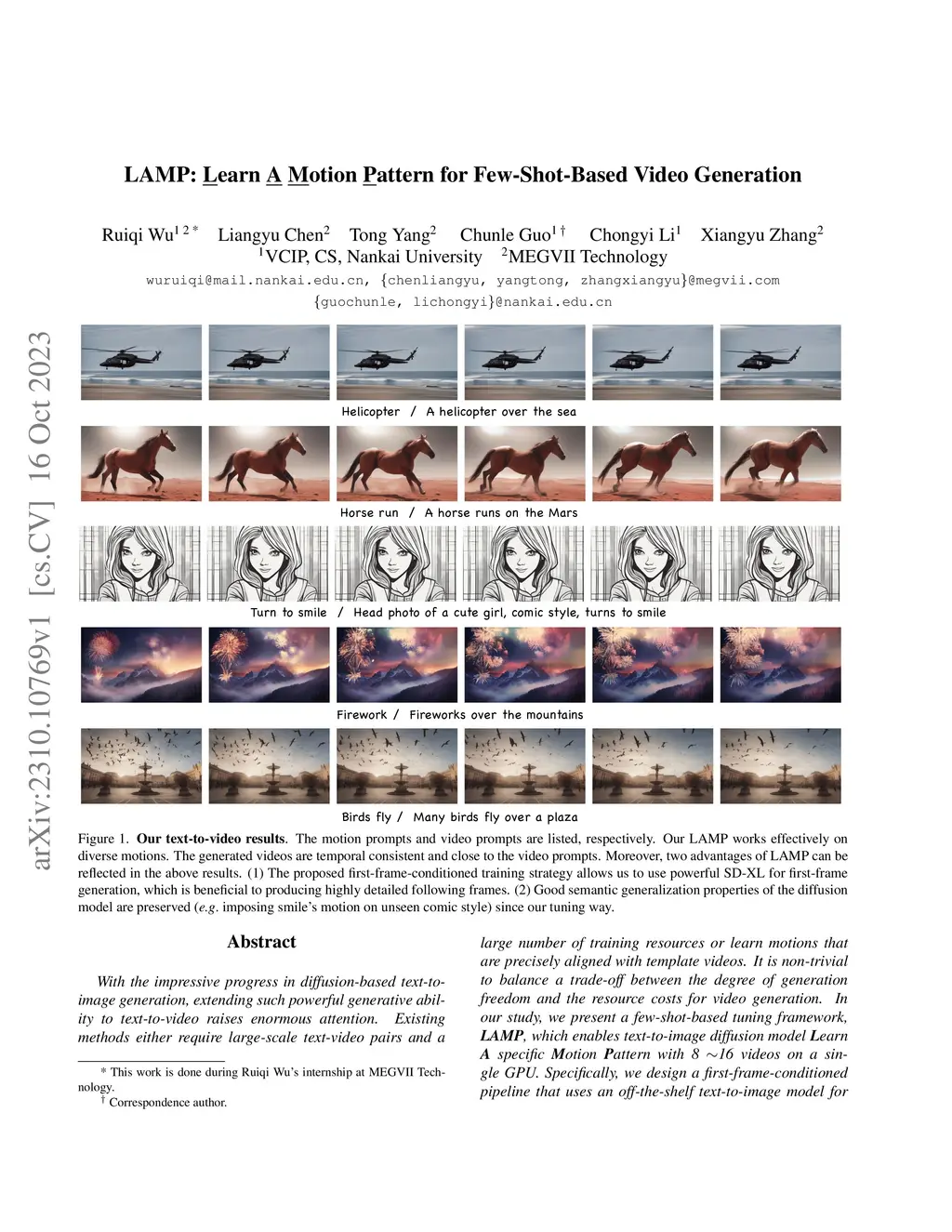 LAMP: Learn A Motion Pattern for Few-Shot-Based Video Generation