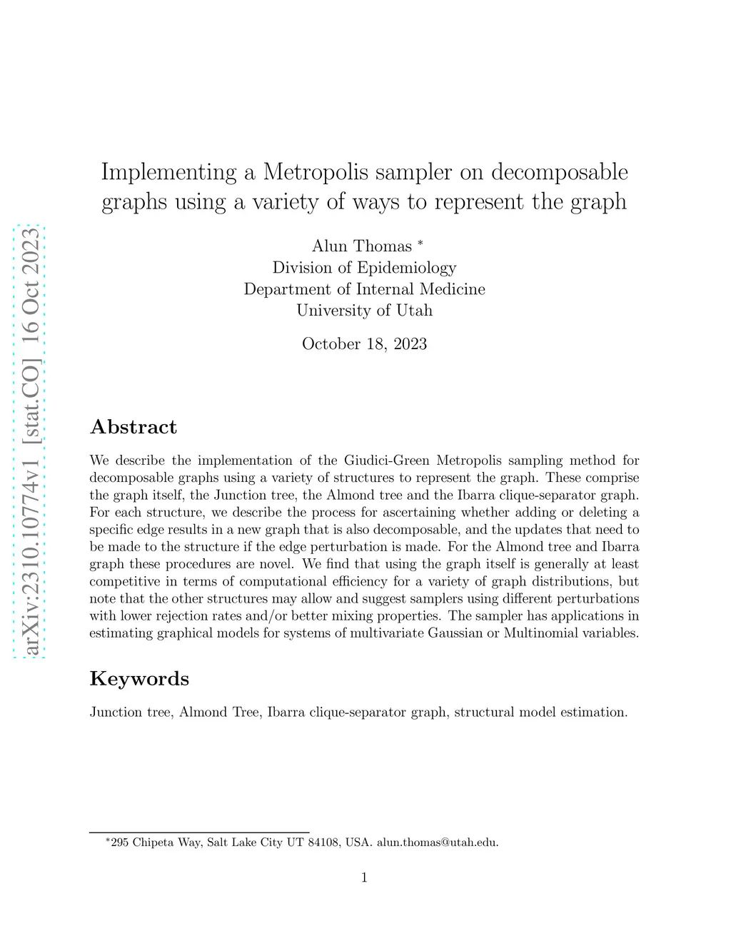 We describe the implementation of the Giudici-Green Metropolis sampling method for decomposable graphs using a variety of structures to represent the graph. These comprise the graph itself, the Junction tree, the Almond tree and the Ibarra clique-separator graph. For each structure, we describe the process for ascertaining whether adding or deleting a specific edge results in a new graph that is also decomposable, and the updates that need to be made to the structure if the edge perturbation is made. For the Almond tree and Ibarra graph these procedures are novel. We find that using the graph itself is generally at least competitive in terms of computational efficiency for a variety of graph distributions, but note that the other structures may allow and suggest samplers using different perturbations with lower rejection rates and/or better mixing properties. The sampler has applications in estimating graphical models for systems of multivariate Gaussian or Multinomial variables.