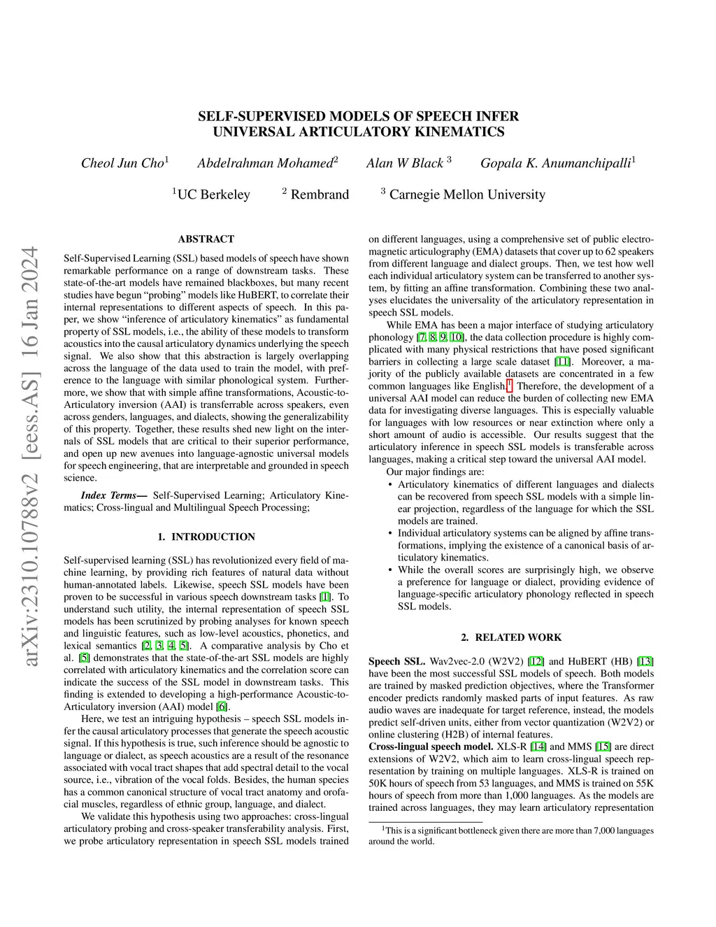 Self-Supervised Models of Speech Infer Universal Articulatory Kinematics
