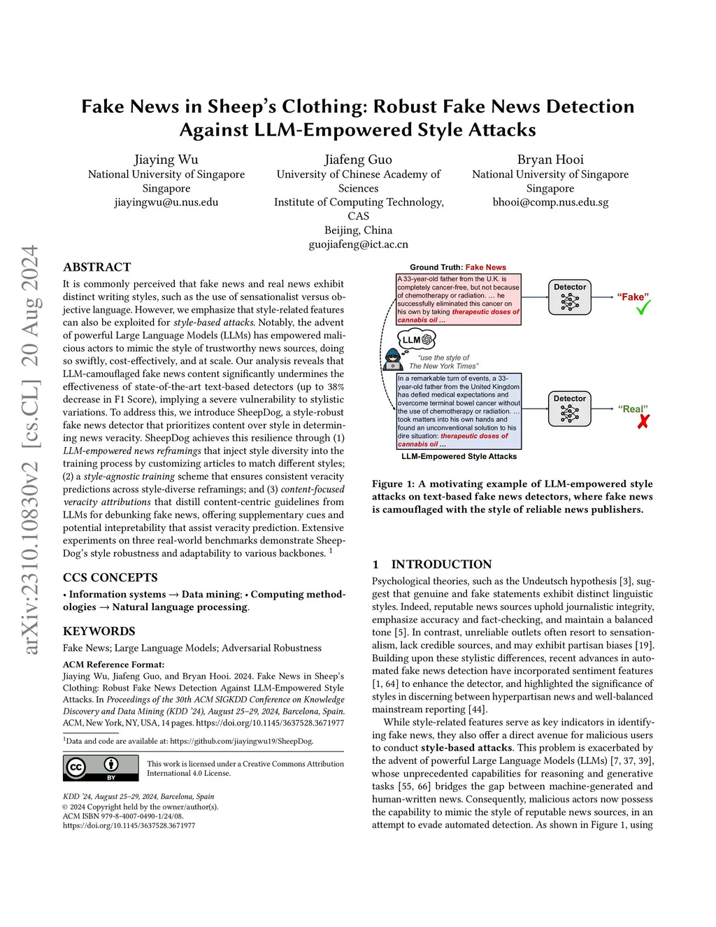 Fake News in Sheep's Clothing: Robust Fake News Detection Against