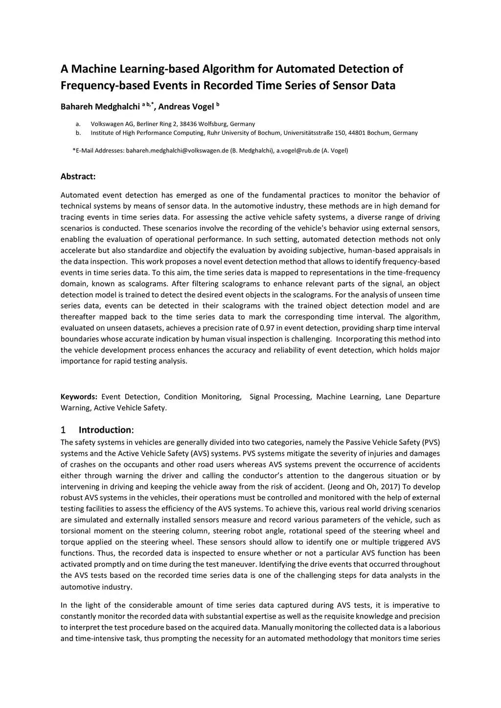 Frequency-based Events in Recorded Time Series of Sensor Data