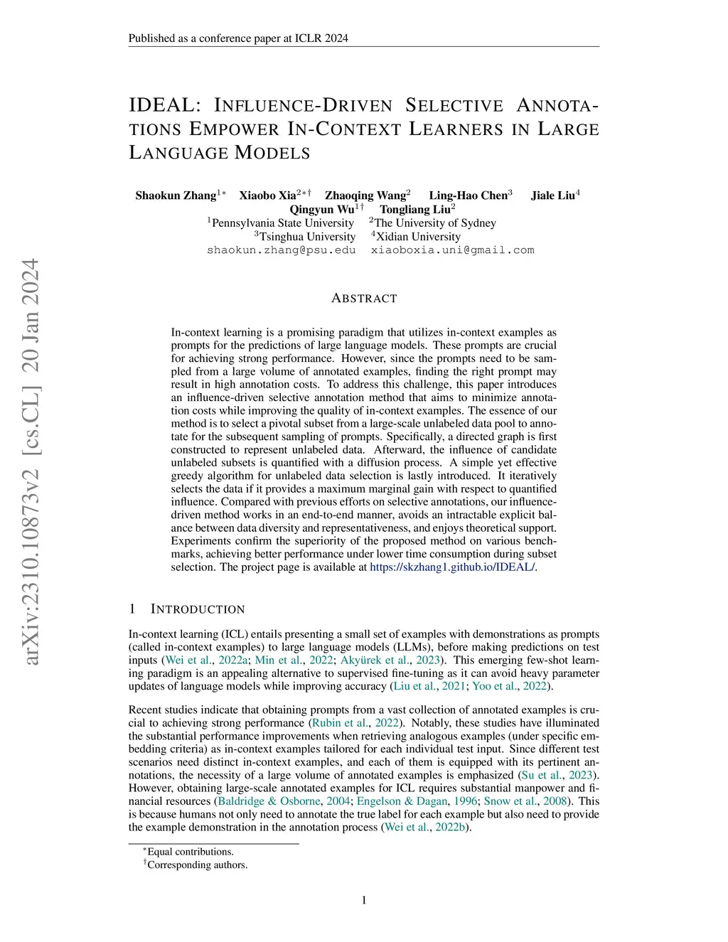 IDEAL: Influence-Driven Selective Annotations Empower In-Context Learners in Large Language Models