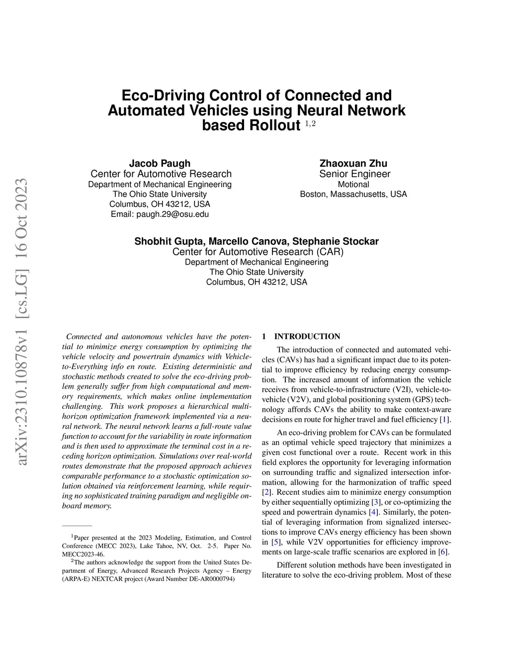 Eco-Driving Control of Connected and Automated Vehicles using Neural