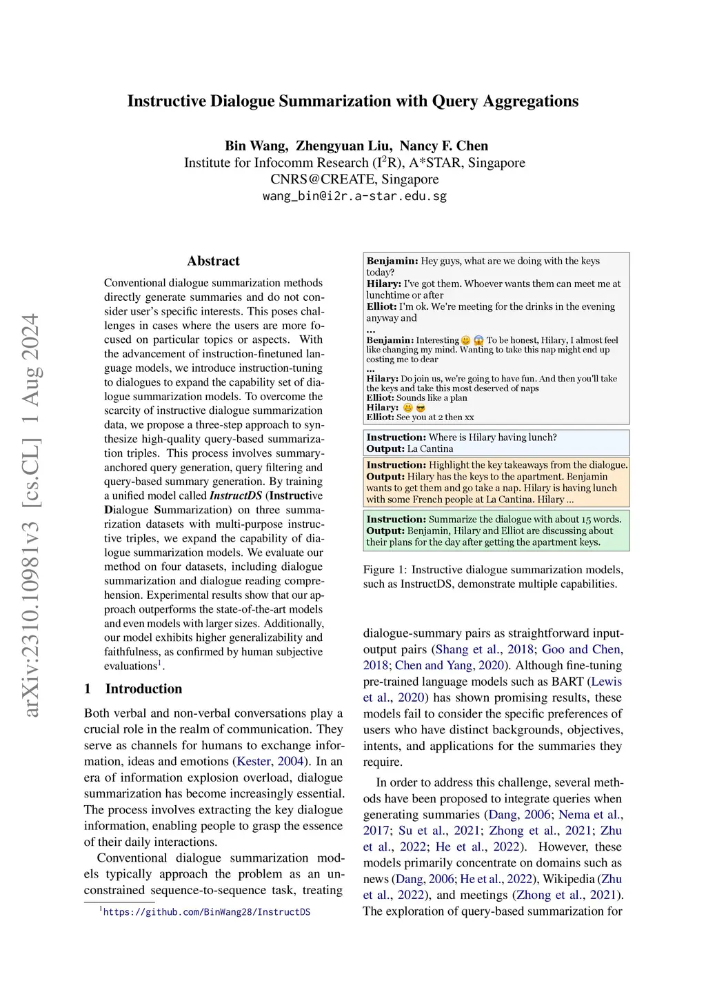 Instructive Dialogue Summarization with Query Aggregations