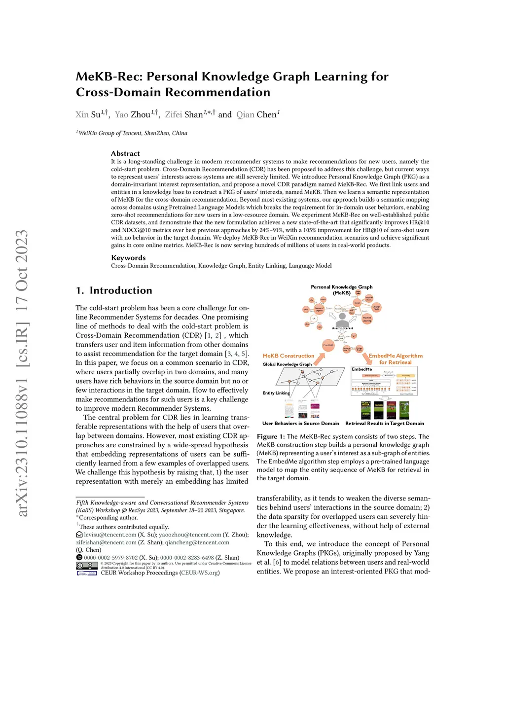 MeKB-Rec: Personal Knowledge Graph Learning for Cross-Domain