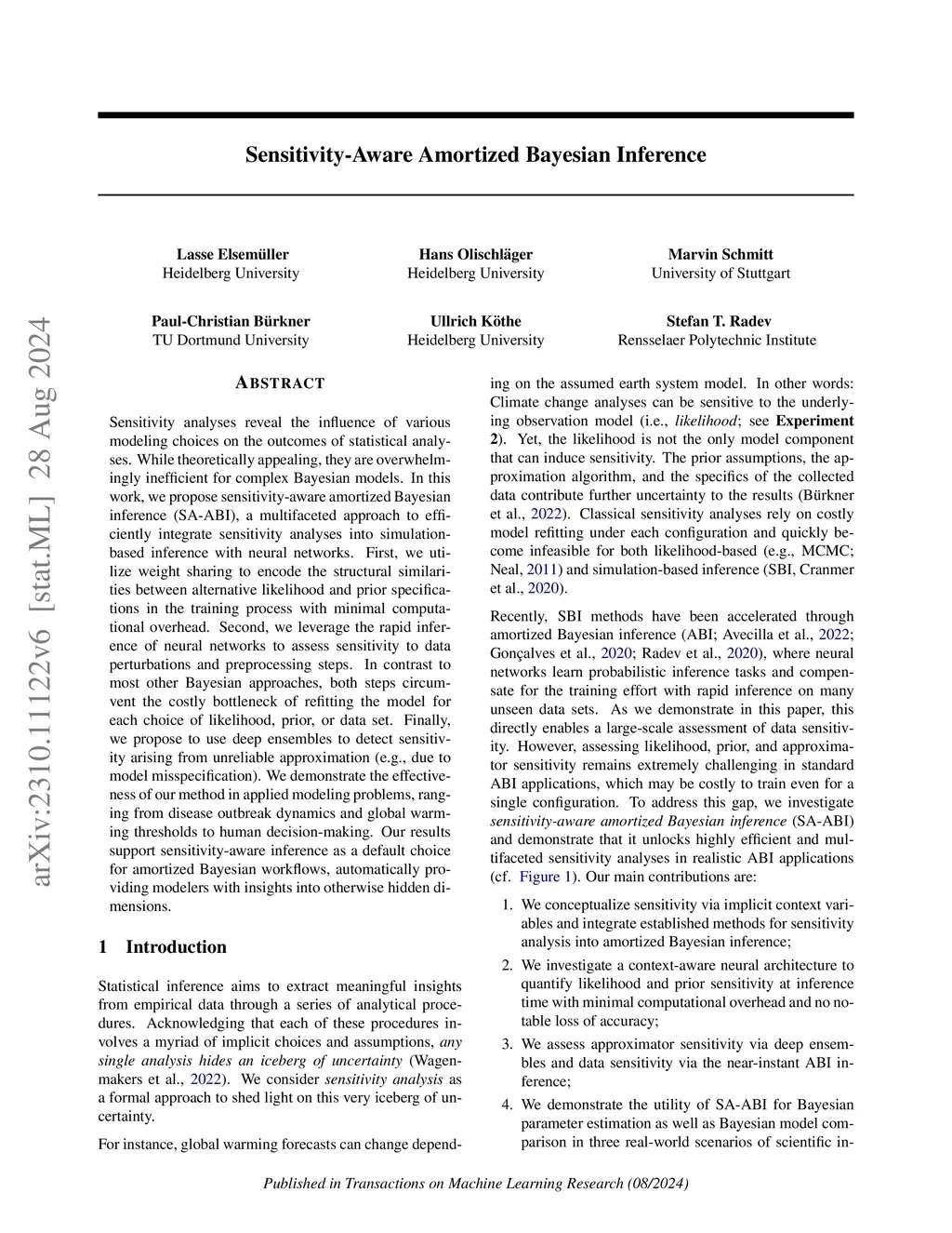 Sensitivity analyses reveal the influence of various modeling choices on the outcomes of statistical analyses. While theoretically appealing, they are overwhelmingly inefficient for complex Bayesian models. In this work, we propose sensitivity-aware amortized Bayesian inference (SA-ABI), a multifaceted approach to efficiently integrate sensitivity analyses into simulation-based inference with neural networks. First, we utilize weight sharing to encode the structural similarities between alternative likelihood and prior specifications in the training process with minimal computational overhead. Second, we leverage the rapid inference of neural networks to assess sensitivity to data perturbations and preprocessing steps. In contrast to most other Bayesian approaches, both steps circumvent the costly bottleneck of refitting the model for each choice of likelihood, prior, or data set. Finally, we propose to use deep ensembles to detect sensitivity arising from unreliable approximation (e.g., due to model misspecification). We demonstrate the effectiveness of our method in applied modeling problems, ranging from disease outbreak dynamics and global warming thresholds to human decision-making. Our results support sensitivity-aware inference as a default choice for amortized Bayesian workflows, automatically providing modelers with insights into otherwise hidden dimensions.