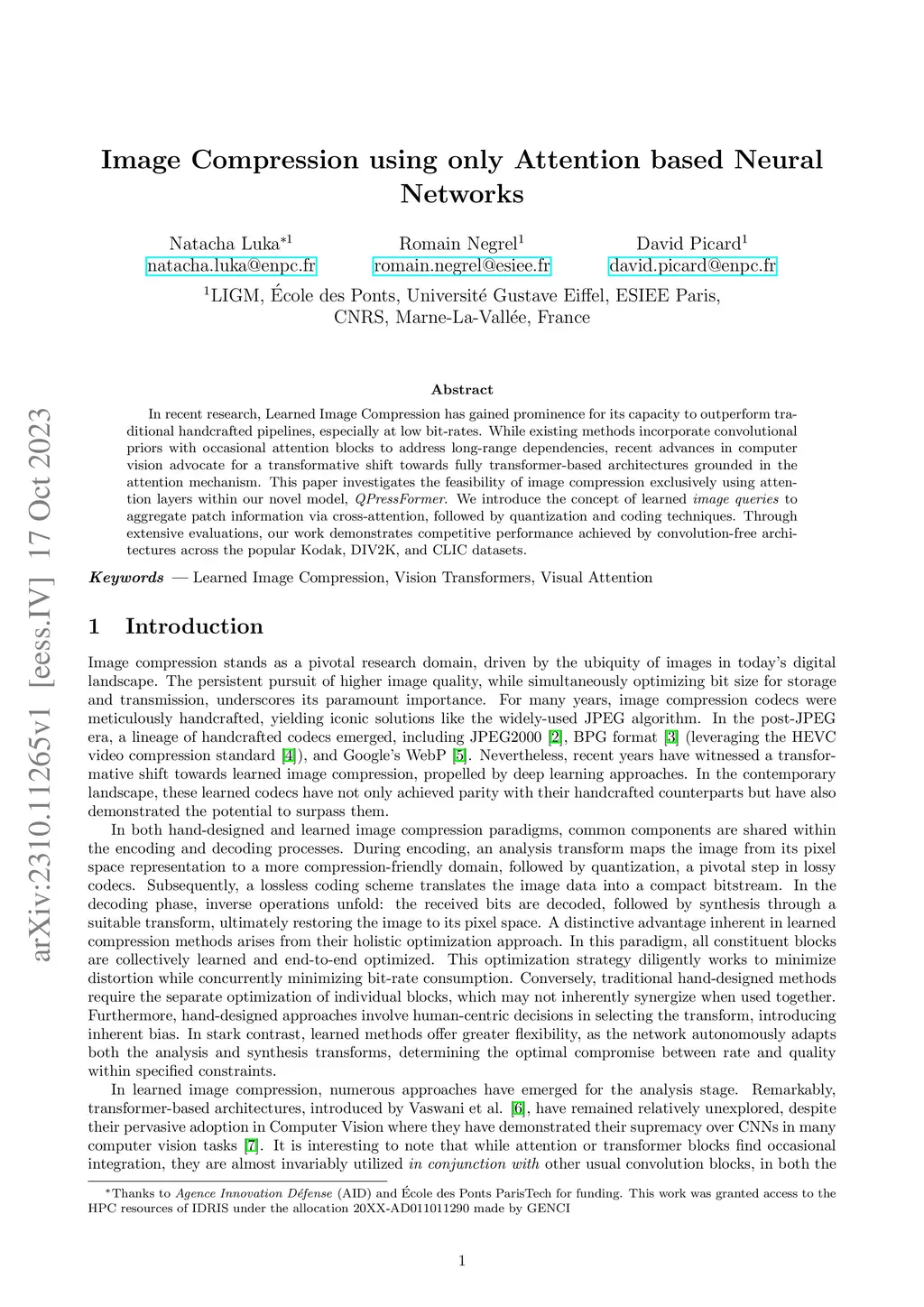 In recent research, Learned Image Compression has gained prominence for its capacity to outperform traditional handcrafted pipelines, especially at low bit-rates. While existing methods incorporate convolutional priors with occasional attention blocks to address long-range dependencies, recent advances in computer vision advocate for a transformative shift towards fully transformer-based architectures grounded in the attention mechanism. This paper investigates the feasibility of image compression exclusively using attention layers within our novel model, QPressFormer. We introduce the concept of learned image queries to aggregate patch information via cross-attention, followed by quantization and coding techniques. Through extensive evaluations, our work demonstrates competitive performance achieved by convolution-free architectures across the popular Kodak, DIV2K, and CLIC datasets.