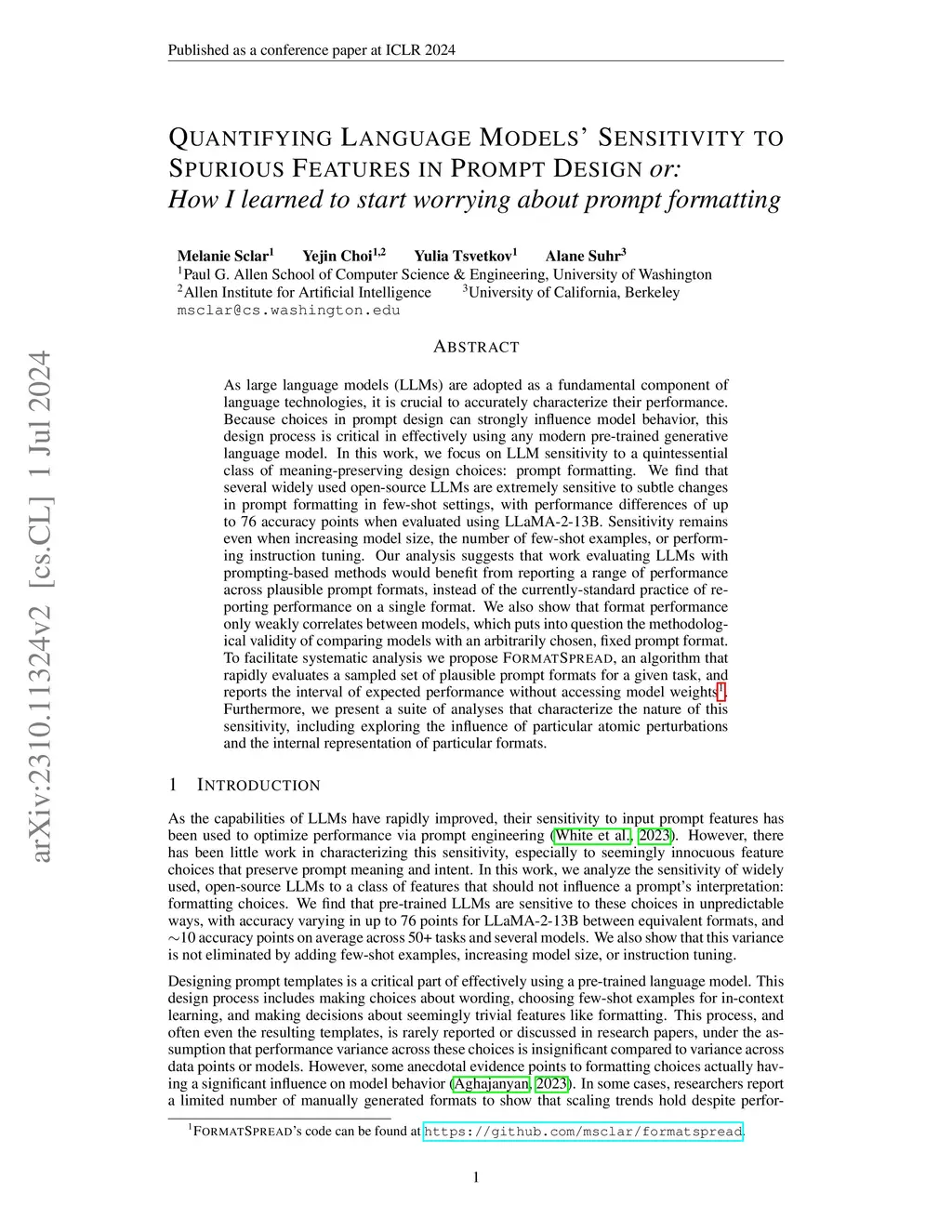 Quantifying Language Models' Sensitivity to Spurious Features in Prompt
