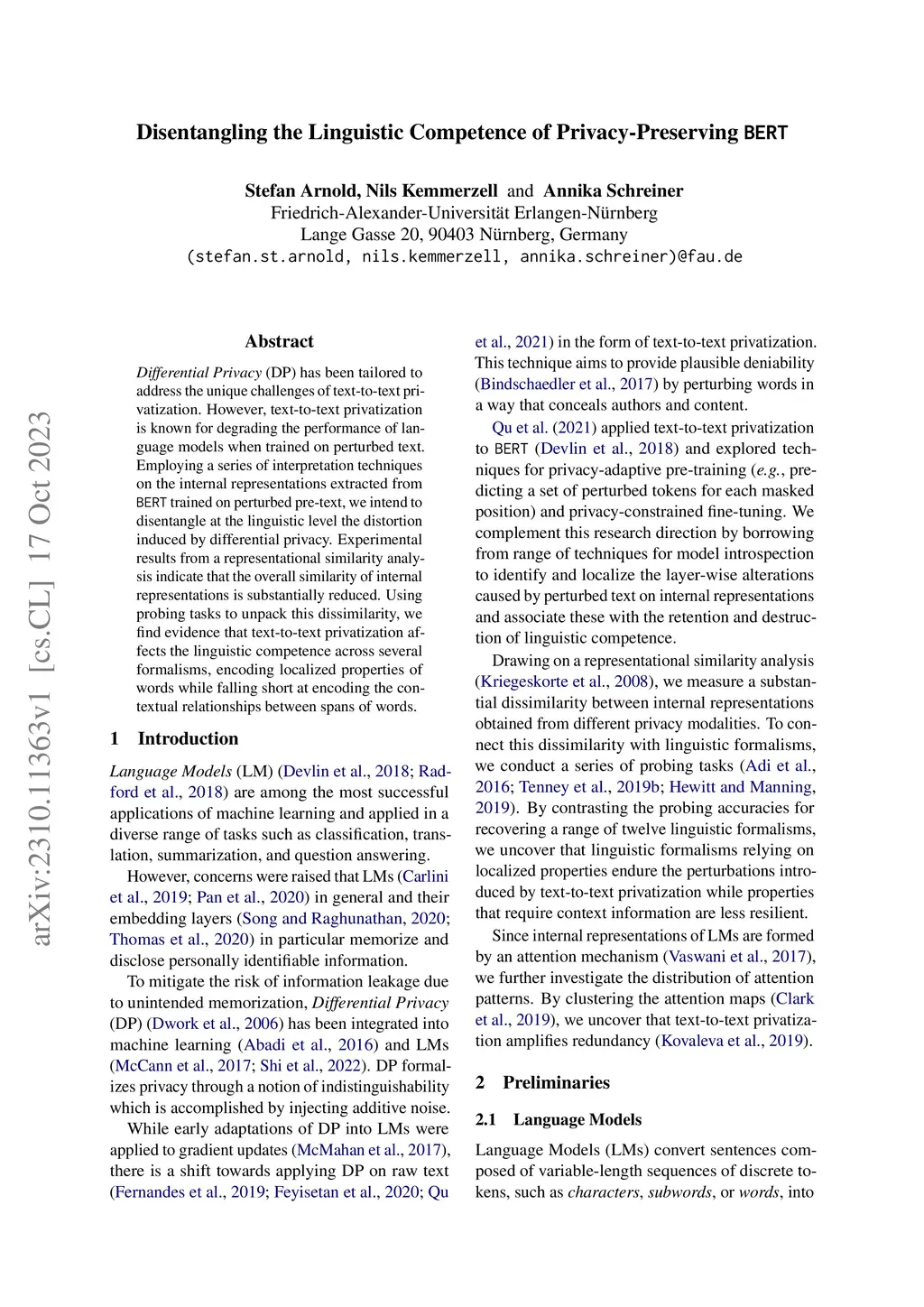Disentangling the Linguistic Competence of Privacy-Preserving BERT
