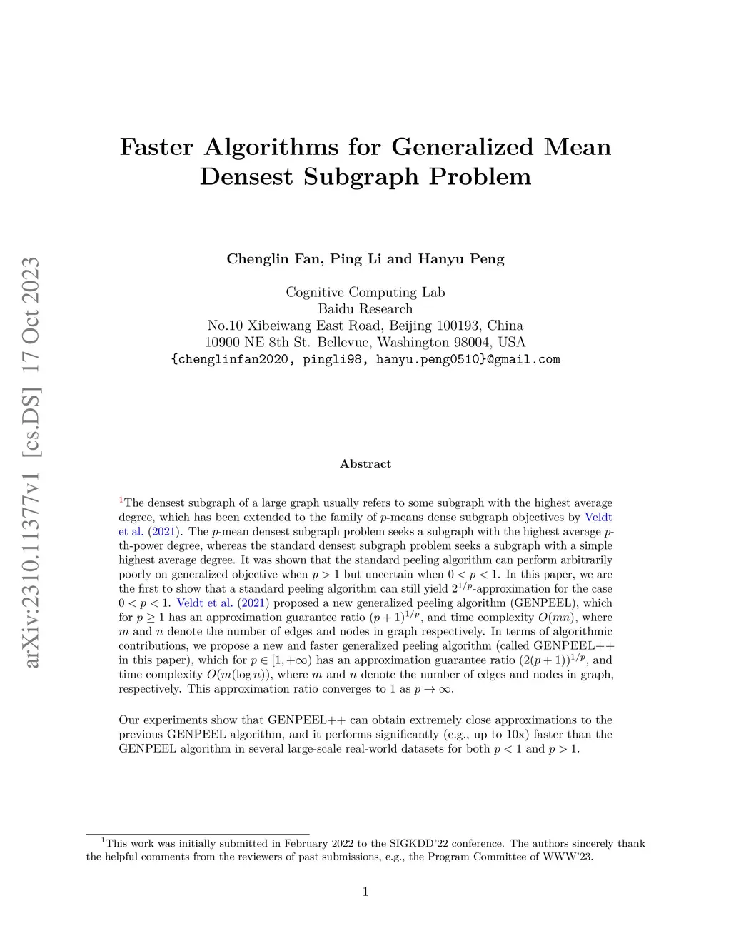 The densest subgraph of a large graph usually refers to some subgraph with the highest average degree, which has been extended to the family of -means dense subgraph objectives by~\citet{veldt2021generalized}. The -mean densest subgraph problem seeks a subgraph with the highest average -th-power degree, whereas the standard densest subgraph problem seeks a subgraph with a simple highest average degree. It was shown that the standard peeling algorithm can perform arbitrarily poorly on generalized objective when but uncertain when . In this paper, we are the first to show that a standard peeling algorithm can still yield -approximation for the case . (Veldt 2021) proposed a new generalized peeling algorithm (GENPEEL), which for has an approximation guarantee ratio , and time complexity , where and denote the number of edges and nodes in graph respectively. In terms of algorithmic contributions, we propose a new and faster generalized peeling algorithm (called GENPEEL++ in this paper), which for has an approximation guarantee ratio , and time complexity , where and denote the number of edges and nodes in graph, respectively. This approximation ratio converges to 1 as .