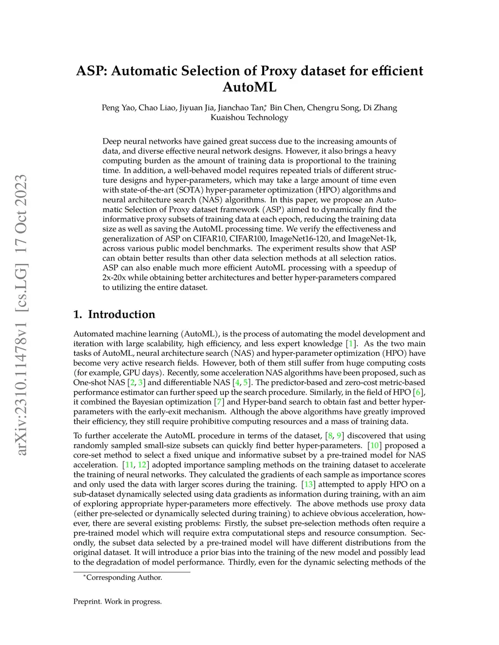 ASP: Automatic Selection of Proxy dataset for efficient AutoML