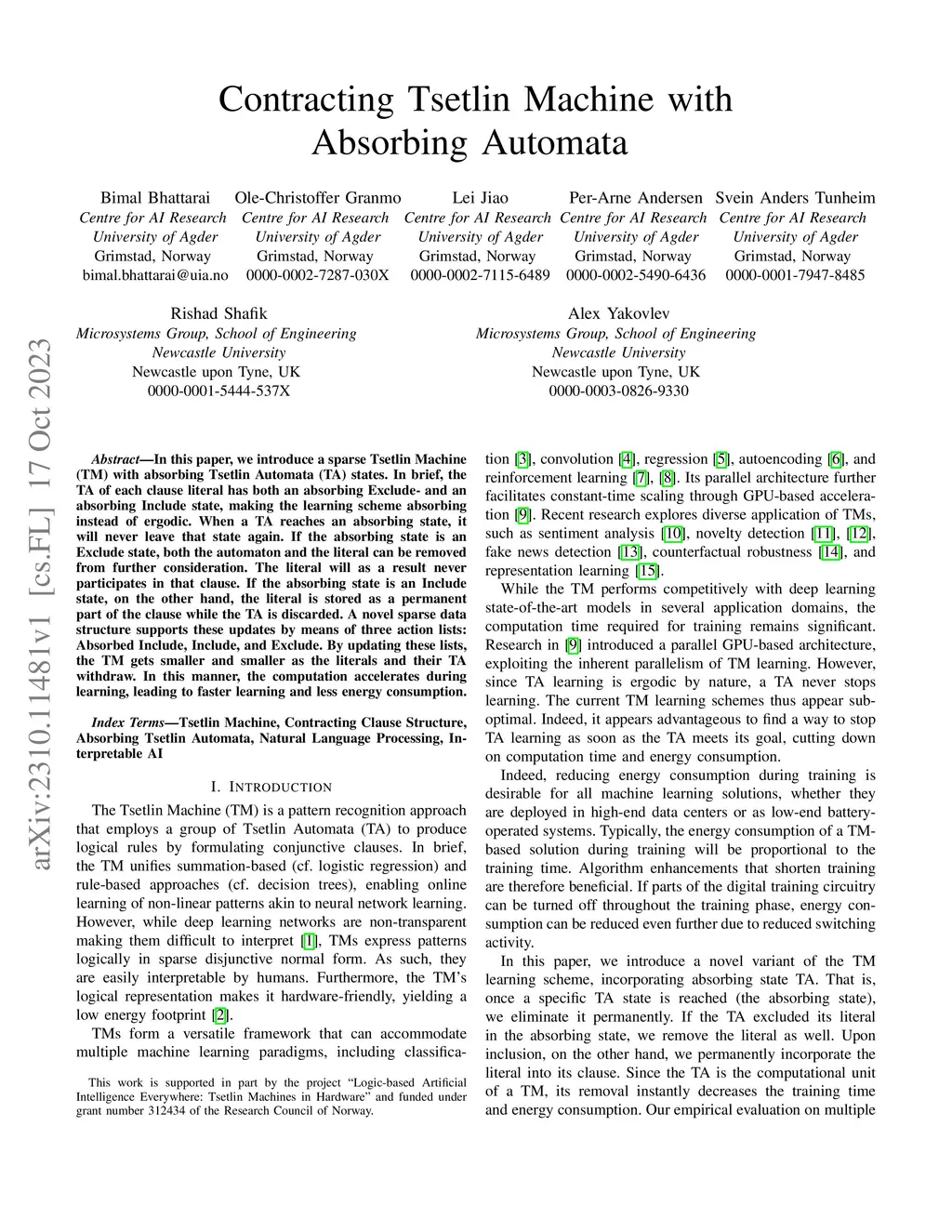 Contracting Tsetlin Machine with Absorbing Automata