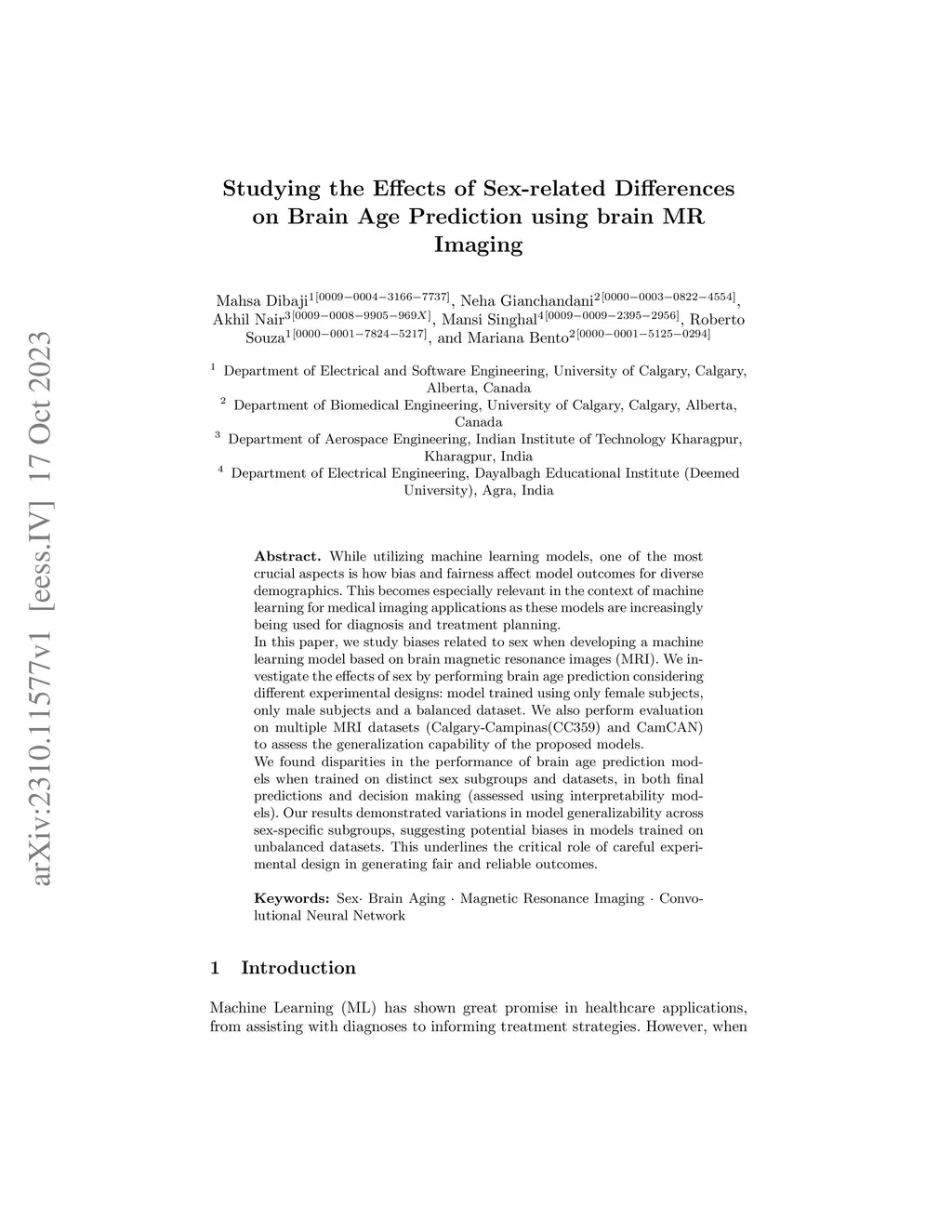 While utilizing machine learning models, one of the most crucial aspects is how bias and fairness affect model outcomes for diverse demographics. This becomes especially relevant in the context of machine learning for medical imaging applications as these models are increasingly being used for diagnosis and treatment planning. In this paper, we study biases related to sex when developing a machine learning model based on brain magnetic resonance images (MRI). We investigate the effects of sex by performing brain age prediction considering different experimental designs: model trained using only female subjects, only male subjects and a balanced dataset. We also perform evaluation on multiple MRI datasets (Calgary-Campinas(CC359) and CamCAN) to assess the generalization capability of the proposed models. We found disparities in the performance of brain age prediction models when trained on distinct sex subgroups and datasets, in both final predictions and decision making (assessed using interpretability models). Our results demonstrated variations in model generalizability across sex-specific subgroups, suggesting potential biases in models trained on unbalanced datasets. This underlines the critical role of careful experimental design in generating fair and reliable outcomes.