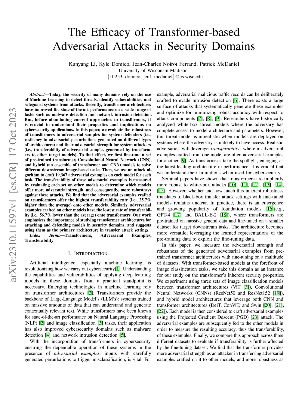 The Efficacy of Transformer-based Adversarial Attacks in Security
