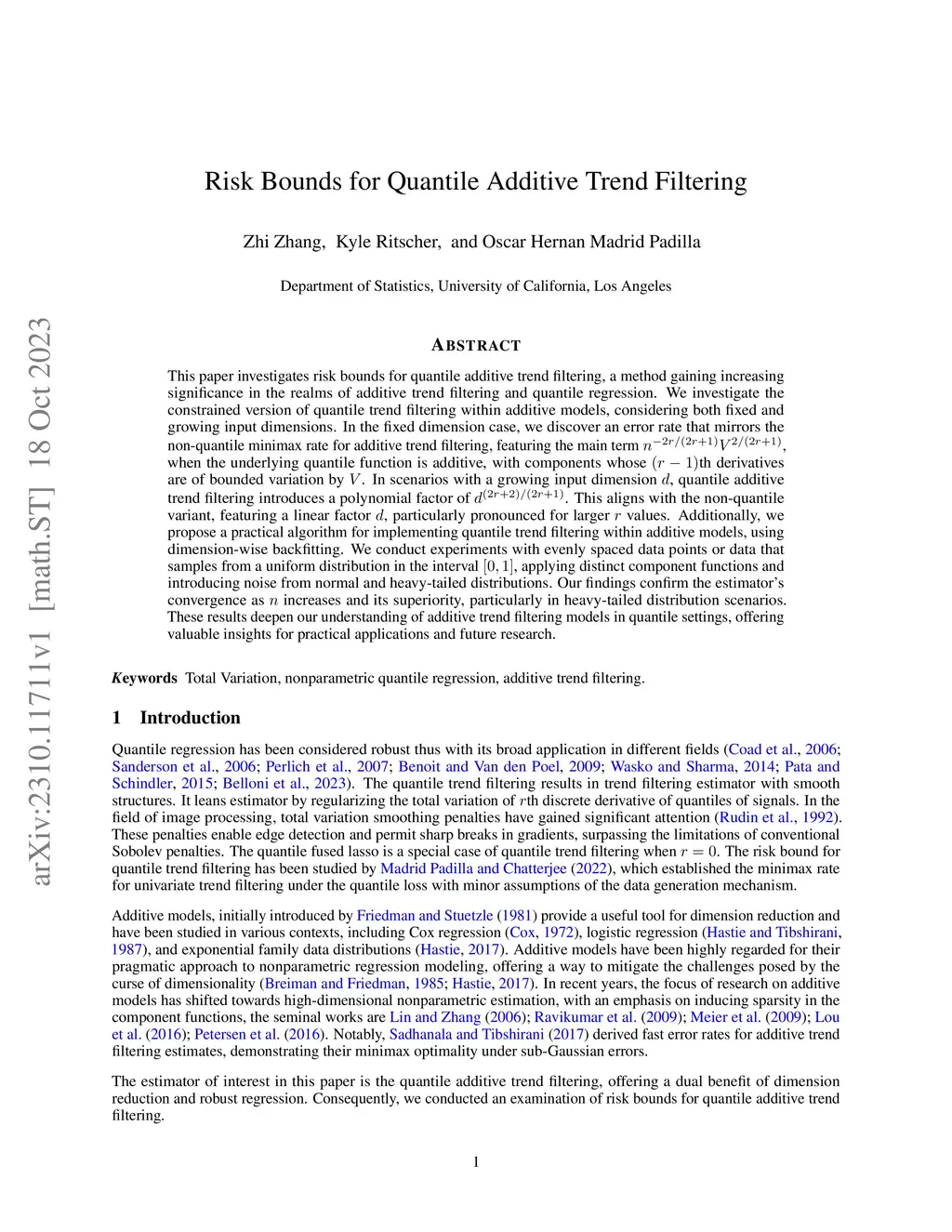 Risk Bounds for Quantile Additive Trend Filtering