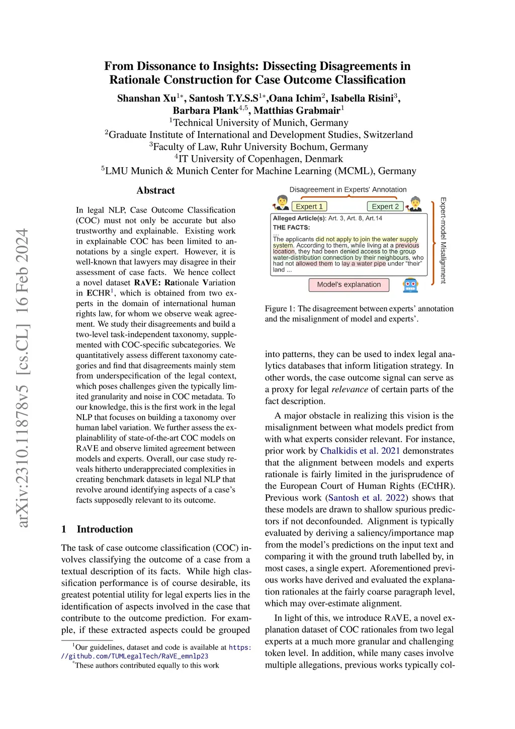 In legal NLP, Case Outcome Classification (COC) must not only be accurate but also trustworthy and explainable. Existing work in explainable COC has been limited to annotations by a single expert. However, it is well-known that lawyers may disagree in their assessment of case facts. We hence collect a novel dataset RAVE: Rationale Variation in ECHR1, which is obtained from two experts in the domain of international human rights law, for whom we observe weak agreement. We study their disagreements and build a two-level task-independent taxonomy, supplemented with COC-specific subcategories. To our knowledge, this is the first work in the legal NLP that focuses on human label variation. We quantitatively assess different taxonomy categories and find that disagreements mainly stem from underspecification of the legal context, which poses challenges given the typically limited granularity and noise in COC metadata. We further assess the explainablility of SOTA COC models on RAVE and observe limited agreement between models and experts. Overall, our case study reveals hitherto underappreciated complexities in creating benchmark datasets in legal NLP that revolve around identifying aspects of a case's facts supposedly relevant to its outcome.