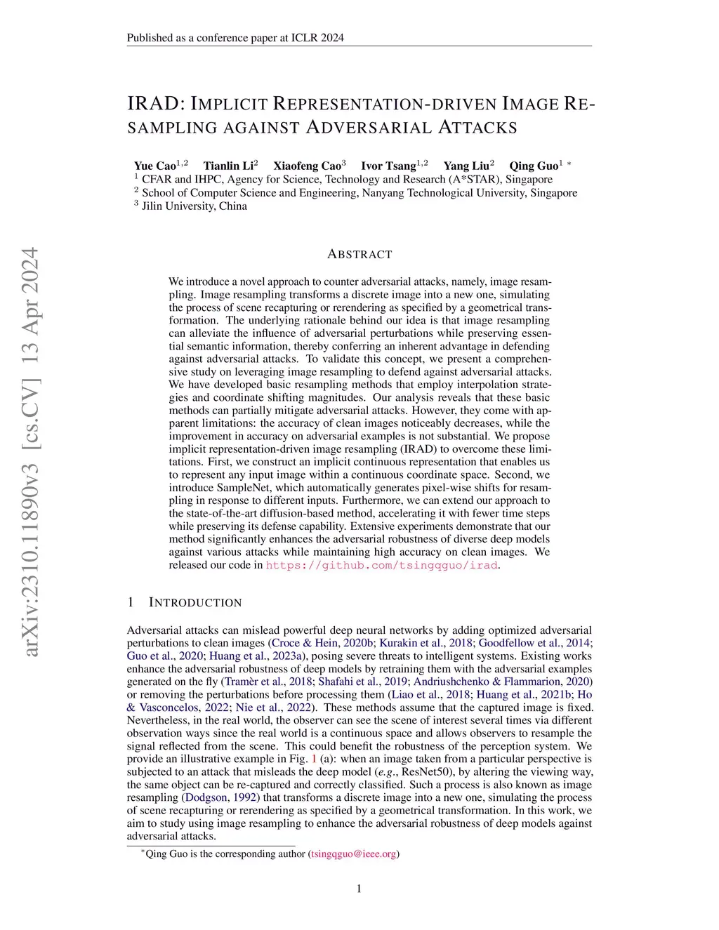 IRAD: Implicit Representation-driven Image Resampling against