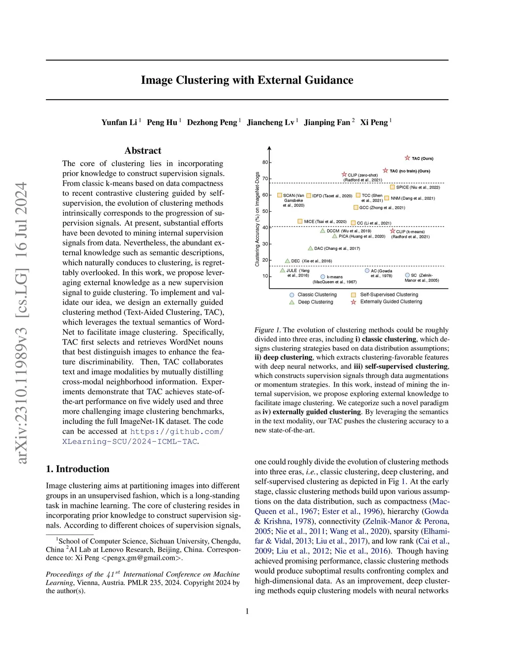 Image Clustering with External Guidance