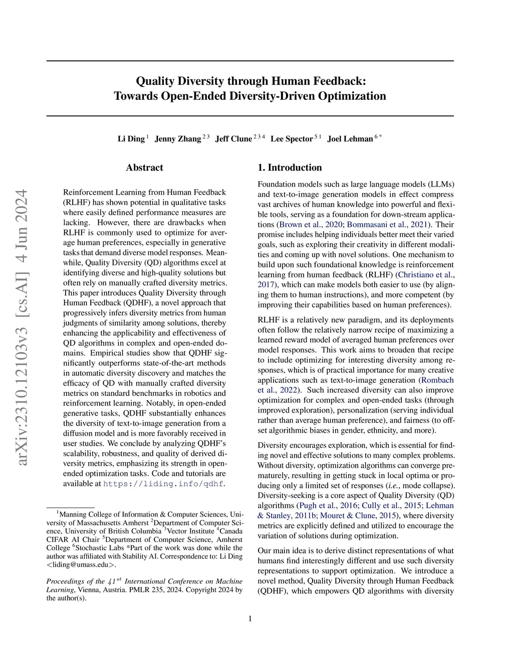 Quality Diversity through Human Feedback: Towards Open-Ended