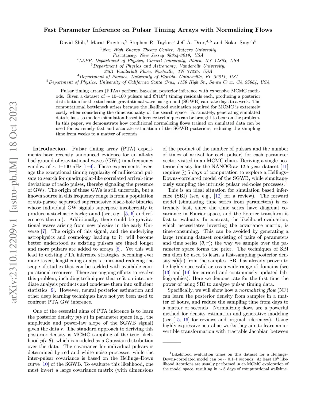 Pulsar timing arrays (PTAs) perform Bayesian posterior inference with expensive MCMC methods. Given a dataset of ~10-100 pulsars and O(10^3) timing residuals each, producing a posterior distribution for the stochastic gravitational wave background (SGWB) can take days to a week. The computational bottleneck arises because the likelihood evaluation required for MCMC is extremely costly when considering the dimensionality of the search space. Fortunately, generating simulated data is fast, so modern simulation-based inference techniques can be brought to bear on the problem. In this paper, we demonstrate how conditional normalizing flows trained on simulated data can be used for extremely fast and accurate estimation of the SGWB posteriors, reducing the sampling time from weeks to a matter of seconds.