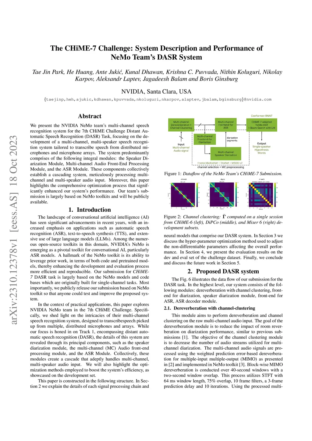 We present the NVIDIA NeMo team's multi-channel speech recognition system for the 7th CHiME Challenge Distant Automatic Speech Recognition (DASR) Task, focusing on the development of a multi-channel, multi-speaker speech recognition system tailored to transcribe speech from distributed microphones and microphone arrays. The system predominantly comprises of the following integral modules: the Speaker Diarization Module, Multi-channel Audio Front-End Processing Module, and the ASR Module. These components collectively establish a cascading system, meticulously processing multi-channel and multi-speaker audio input. Moreover, this paper highlights the comprehensive optimization process that significantly enhanced our system's performance. Our team's submission is largely based on NeMo toolkits and will be publicly available.