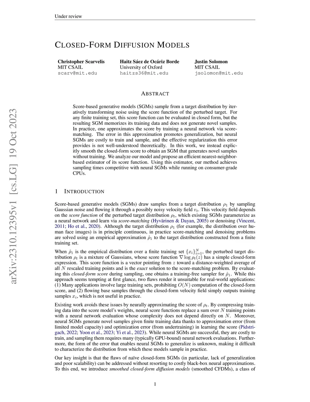 Closed-Form Diffusion Models