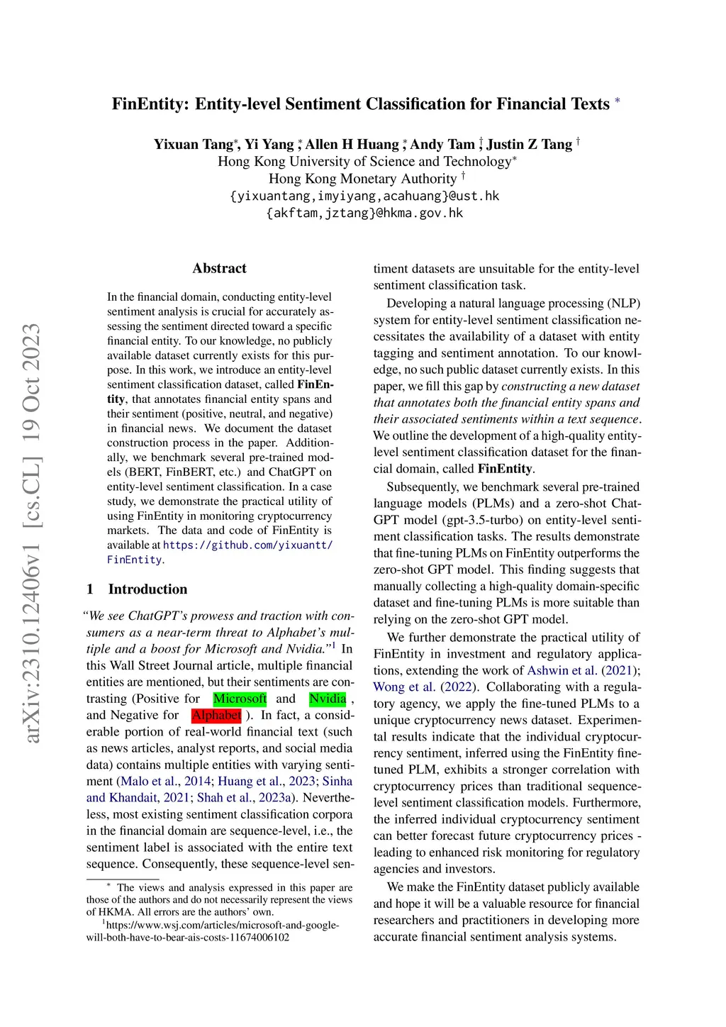 FinEntity: Entity-level Sentiment Classification for Financial Texts
