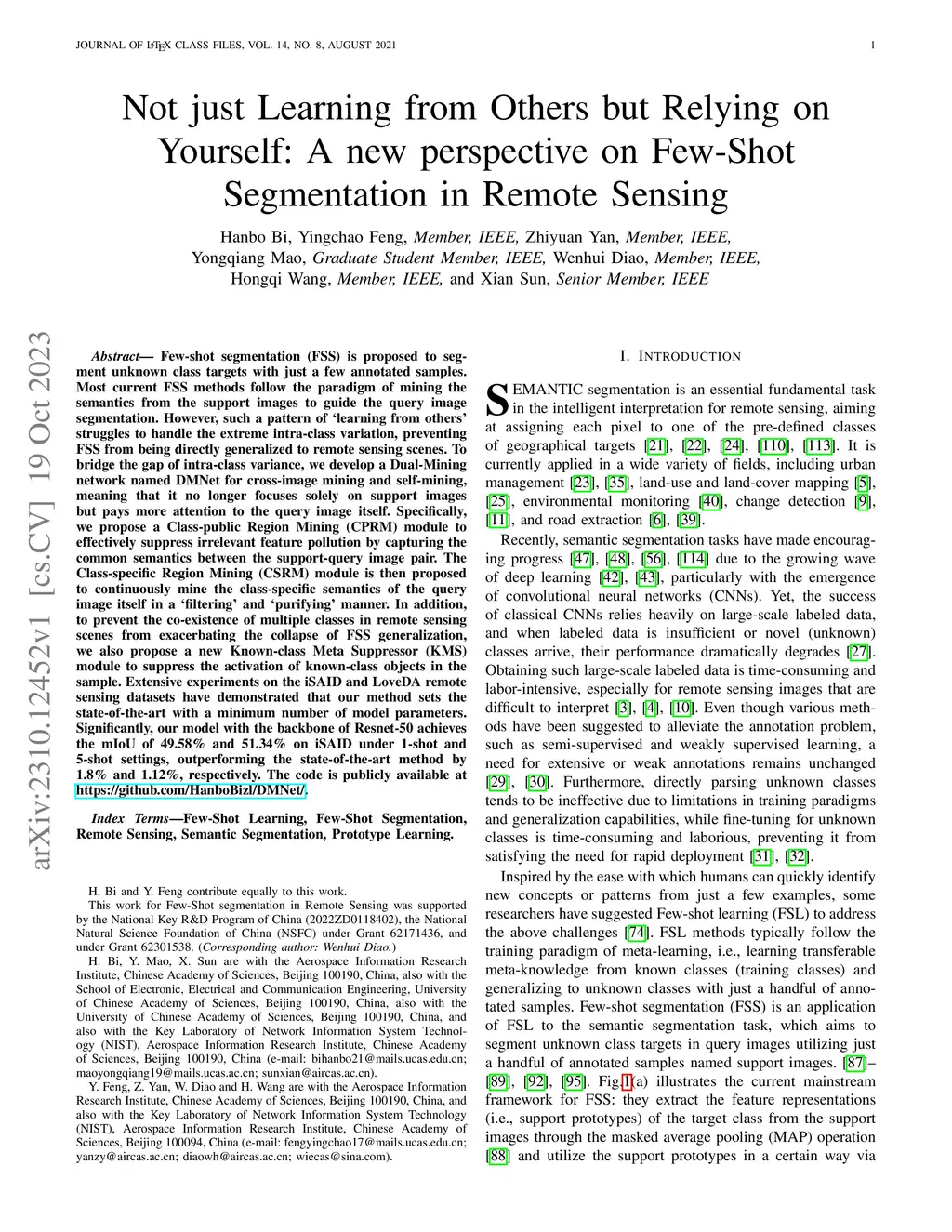 on Few-Shot Segmentation in Remote Sensing