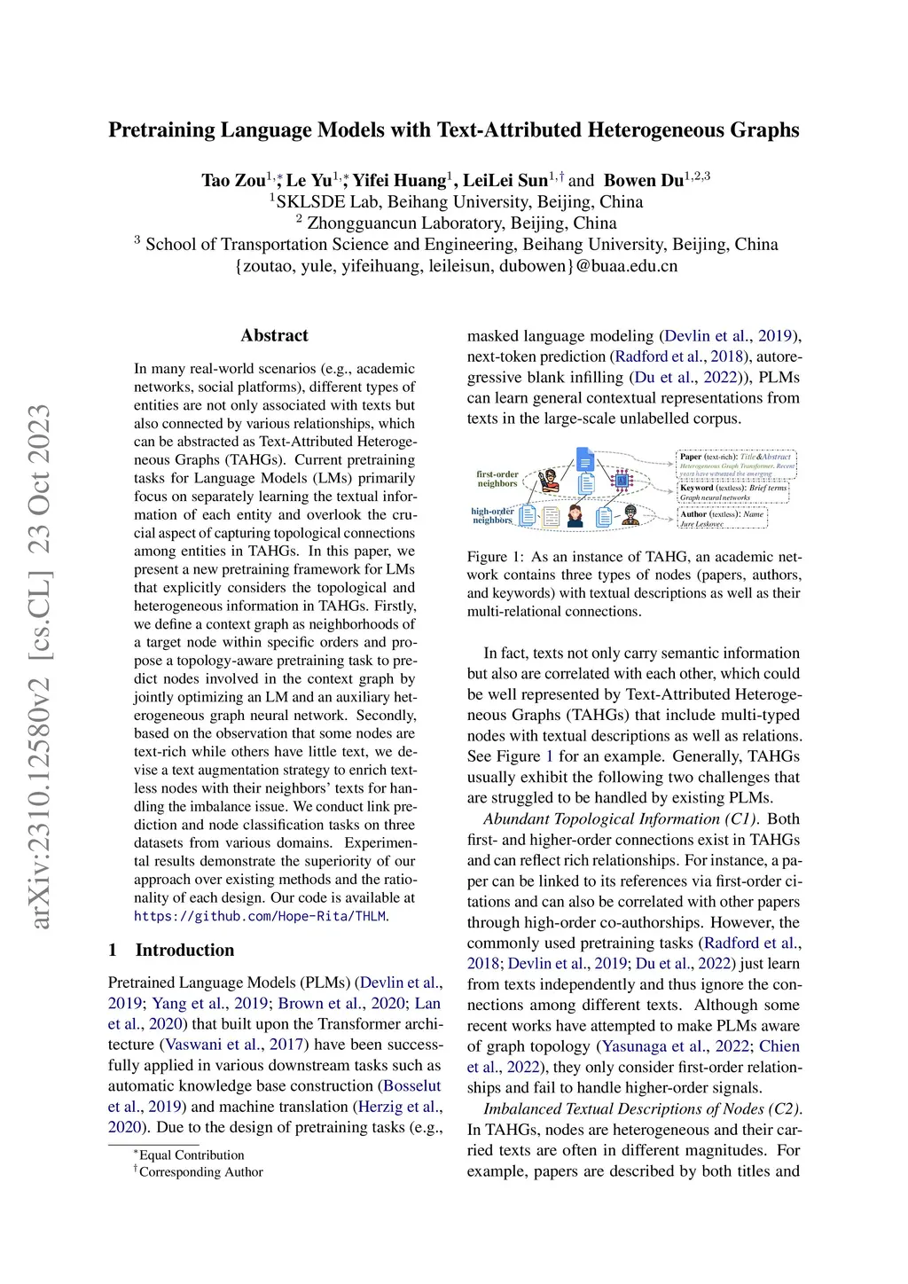 Pretraining Language Models with Text-Attributed Heterogeneous Graphs