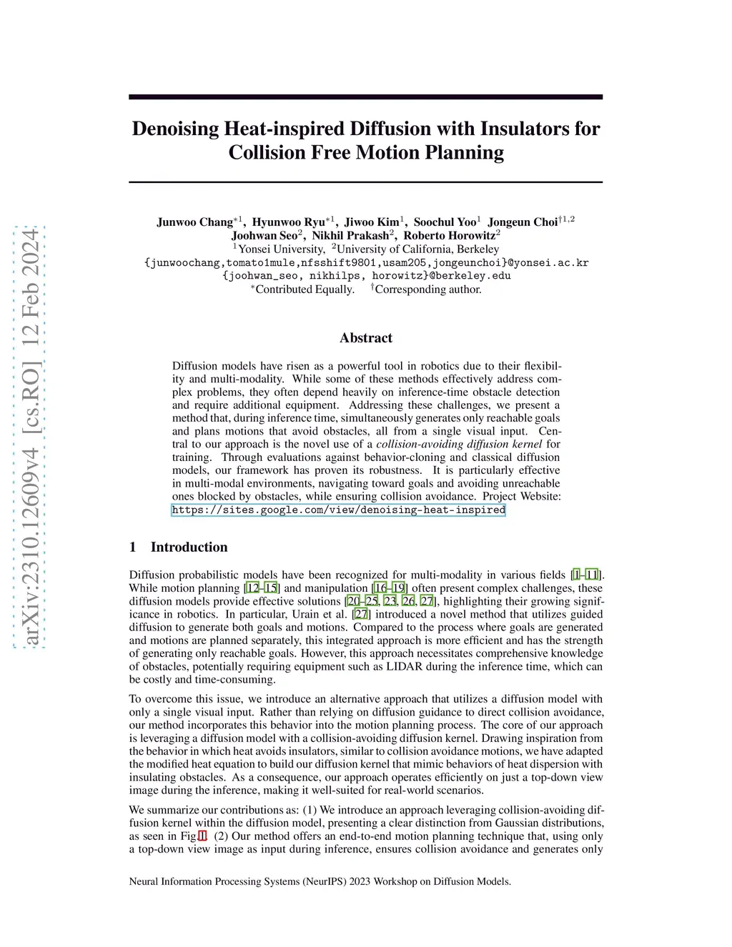Denoising Heat-inspired Diffusion with Insulators for Collision Free