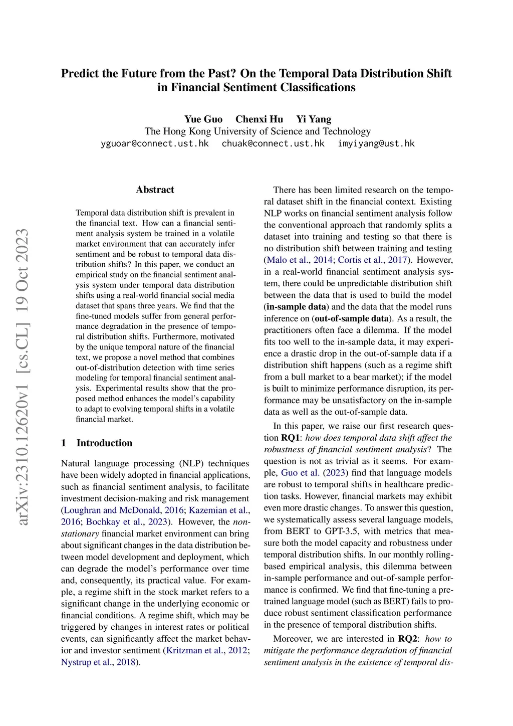 Temporal data distribution shift is prevalent in the financial text. How can a financial sentiment analysis system be trained in a volatile market environment that can accurately infer sentiment and be robust to temporal data distribution shifts? In this paper, we conduct an empirical study on the financial sentiment analysis system under temporal data distribution shifts using a real-world financial social media dataset that spans three years. We find that the fine-tuned models suffer from general performance degradation in the presence of temporal distribution shifts. Furthermore, motivated by the unique temporal nature of the financial text, we propose a novel method that combines out-of-distribution detection with time series modeling for temporal financial sentiment analysis. Experimental results show that the proposed method enhances the model's capability to adapt to evolving temporal shifts in a volatile financial market.