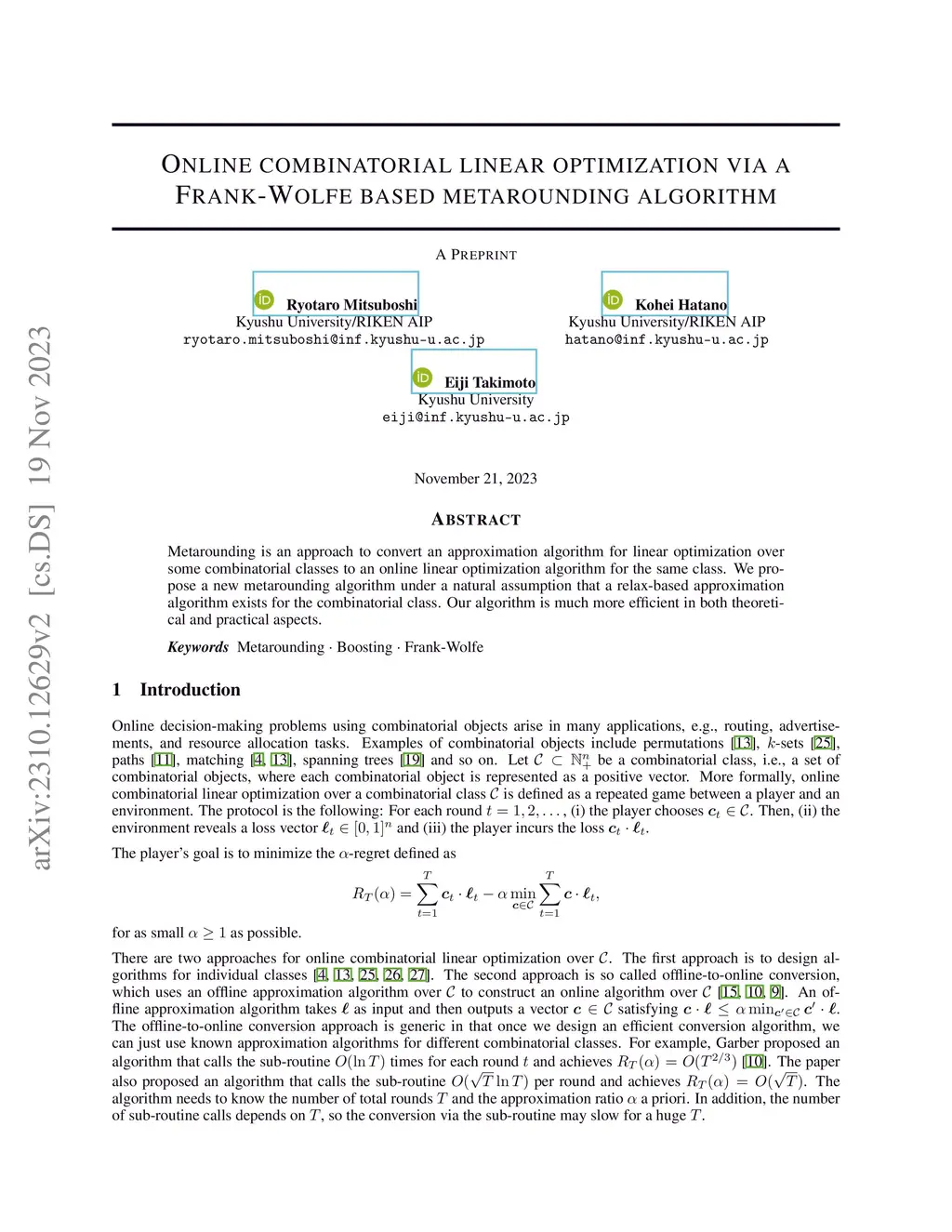 Online Combinatorial Linear Optimization via a Frank-Wolfe-based