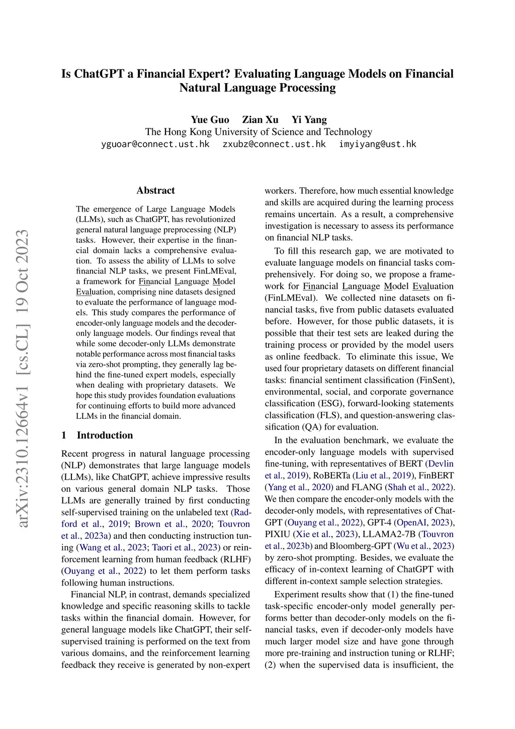 Is ChatGPT a Financial Expert? Evaluating Language Models on Financial
