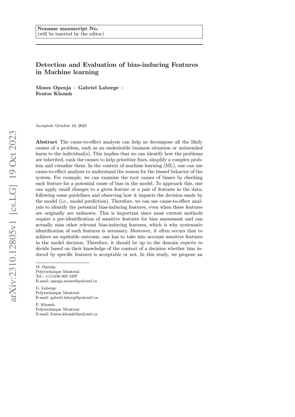 Detection and Evaluation of bias-inducing Features in Machine learning