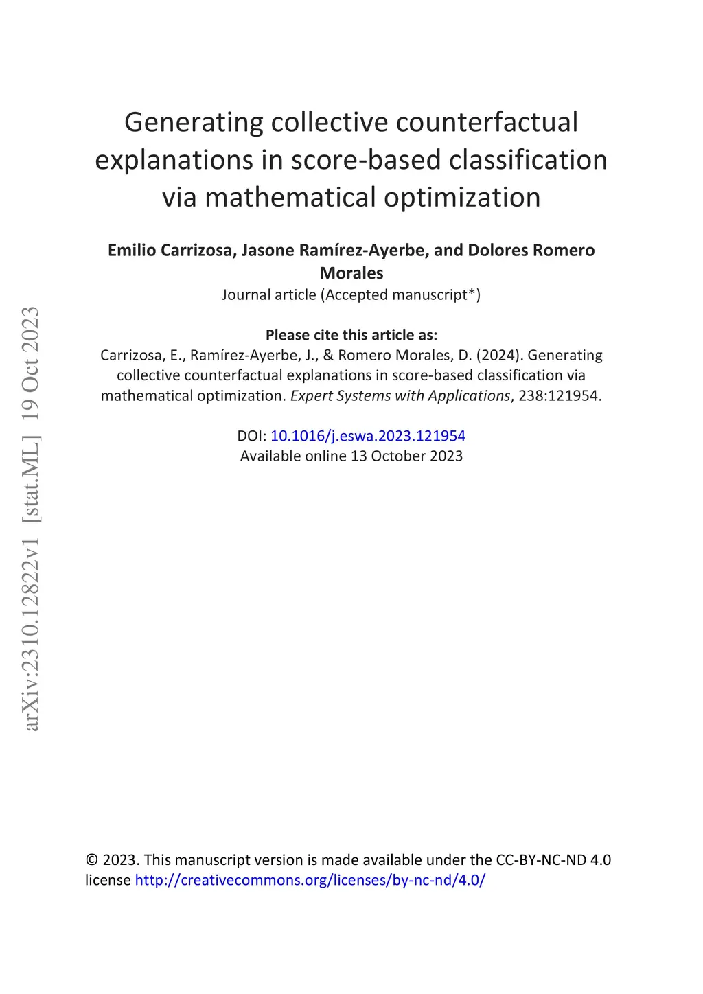 Due to the increasing use of Machine Learning models in high stakes decision making settings, it has become increasingly important to have tools to understand how models arrive at decisions. Assuming a trained Supervised Classification model, explanations can be obtained via counterfactual analysis: a counterfactual explanation of an instance indicates how this instance should be minimally modified so that the perturbed instance is classified in the desired class by the Machine Learning classification model. Most of the Counterfactual Analysis literature focuses on the single-instance single-counterfactual setting, in which the analysis is done for one single instance to provide one single explanation. Taking a stakeholder's perspective, in this paper we introduce the so-called collective counterfactual explanations. By means of novel Mathematical Optimization models, we provide a counterfactual explanation for each instance in a group of interest, so that the total cost of the perturbations is minimized under some linking constraints. Making the process of constructing counterfactuals collective instead of individual enables us to detect the features that are critical to the entire dataset to have the individuals classified in the desired class. Our methodology allows for some instances to be treated individually, performing the collective counterfactual analysis for a fraction of records of the group of interest. This way, outliers are identified and handled appropriately. Under some assumptions on the classifier and the space in which counterfactuals are sought, finding collective counterfactuals is reduced to solving a convex quadratic linearly constrained mixed integer optimization problem, which, for datasets of moderate size, can be solved to optimality using existing solvers. The performance of our approach is illustrated on real-world datasets, demonstrating its usefulness.