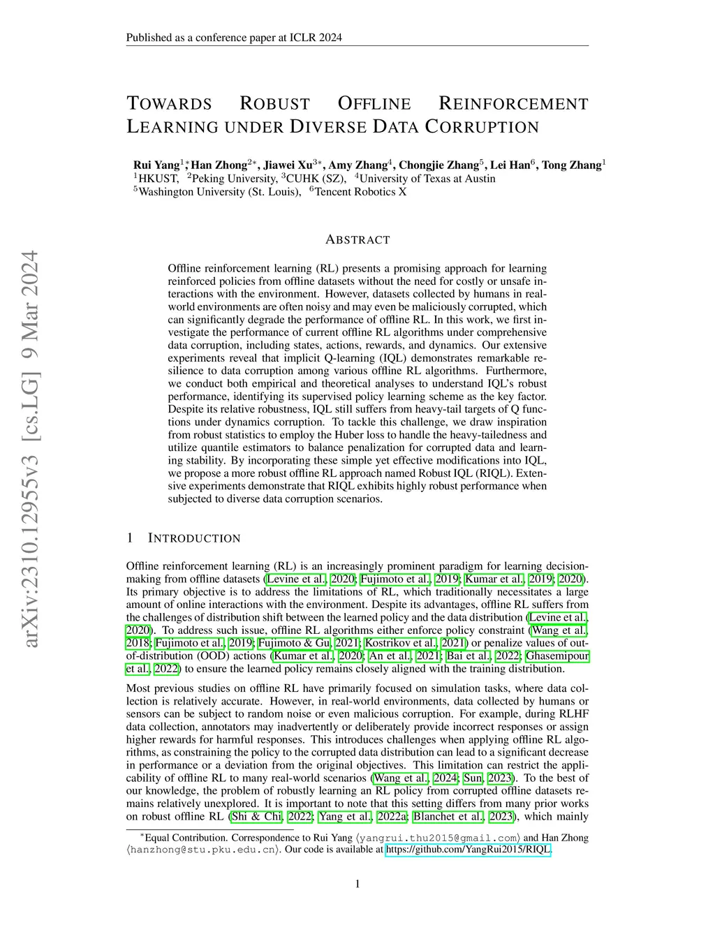 Offline reinforcement learning (RL) presents a promising approach for learning reinforced policies from offline datasets without the need for costly or unsafe interactions with the environment. However, datasets collected by humans in real-world environments are often noisy and may even be maliciously corrupted, which can significantly degrade the performance of offline RL. In this work, we first investigate the performance of current offline RL algorithms under comprehensive data corruption, including states, actions, rewards, and dynamics. Our extensive experiments reveal that implicit Q-learning (IQL) demonstrates remarkable resilience to data corruption among various offline RL algorithms. Furthermore, we conduct both empirical and theoretical analyses to understand IQL's robust performance, identifying its supervised policy learning scheme as the key factor. Despite its relative robustness, IQL still suffers from heavy-tail targets of Q functions under dynamics corruption. To tackle this challenge, we draw inspiration from robust statistics to employ the Huber loss to handle the heavy-tailedness and utilize quantile estimators to balance penalization for corrupted data and learning stability. By incorporating these simple yet effective modifications into IQL, we propose a more robust offline RL approach named Robust IQL (RIQL). Extensive experiments demonstrate that RIQL exhibits highly robust performance when subjected to diverse data corruption scenarios.