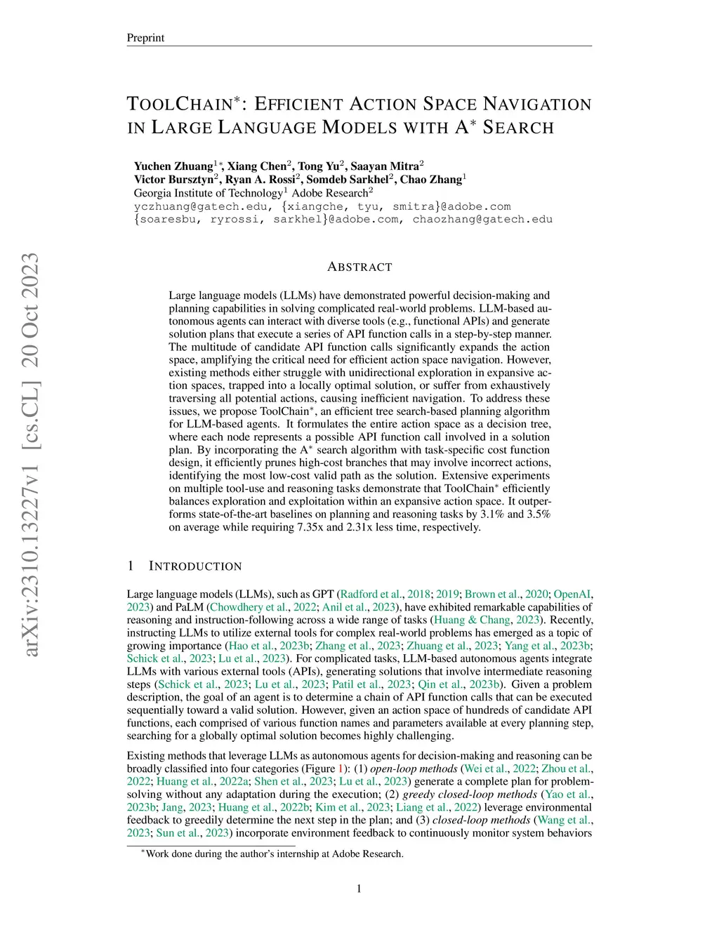 ToolChain*: Efficient Action Space Navigation in Large Language Models