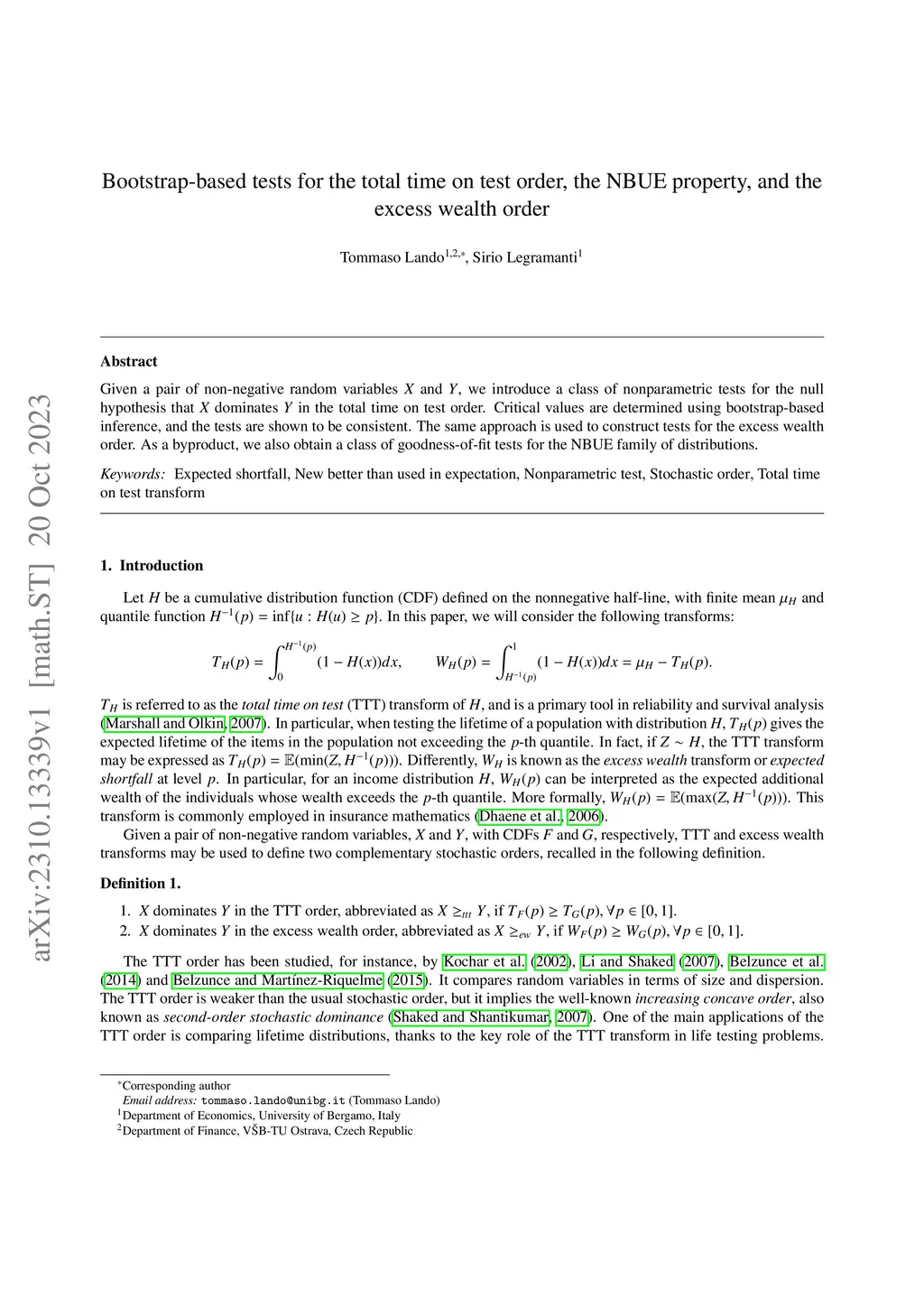 Given a pair of non-negative random variables and , we introduce a class of nonparametric tests for the null hypothesis that dominates in the total time on test order. Critical values are determined using bootstrap-based inference, and the tests are shown to be consistent. The same approach is used to construct tests for the excess wealth order. As a byproduct, we also obtain a class of goodness-of-fit tests for the NBUE family of distributions.