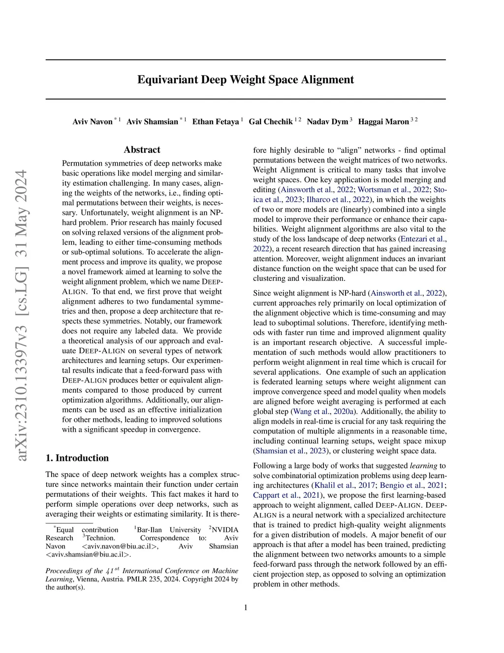 Permutation symmetries of deep networks make basic operations like model merging and similarity estimation challenging. In many cases, aligning the weights of the networks, i.e., finding optimal permutations between their weights, is necessary. Unfortunately, weight alignment is an NP-hard problem. Prior research has mainly focused on solving relaxed versions of the alignment problem, leading to either time-consuming methods or sub-optimal solutions. To accelerate the alignment process and improve its quality, we propose a novel framework aimed at learning to solve the weight alignment problem, which we name Deep-Align. To that end, we first prove that weight alignment adheres to two fundamental symmetries and then, propose a deep architecture that respects these symmetries. Notably, our framework does not require any labeled data. We provide a theoretical analysis of our approach and evaluate Deep-Align on several types of network architectures and learning setups. Our experimental results indicate that a feed-forward pass with Deep-Align produces better or equivalent alignments compared to those produced by current optimization algorithms. Additionally, our alignments can be used as an effective initialization for other methods, leading to improved solutions with a significant speedup in convergence.